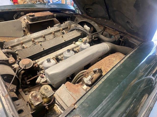These cars were powered by a 4.2-liter DOHC six-cylinder engine that was rated at 245 hp using a dual carburetor set-up (the E-Types had three carbs with the same engine which delivered 20 more horses). The seller’s car has the triple-carb configuration that was also used on the XKE. The engine is paired with a 3-speed automatic transmission supplied by BorgWarner. We’re told the motor here turns freely and the cylinders have been flooded with Mystery Oil in anticipation of getting it fired up again.