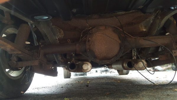 Underneath, we can see where the current owner has replaced the trunk pan, but the rest of the underside needs attention as well. The Flowmaster mufflers suggest again that this car made some demonstrations of speed, and the straps they are held up with gives you some clues as to the quality of the work done to the car. The owner says that it needs floor pans, which isn’t a surprise for a sixties GM car that probably spent most of its life in the Northeast. As long as snow and sixties cars exist, body men will always have job security.