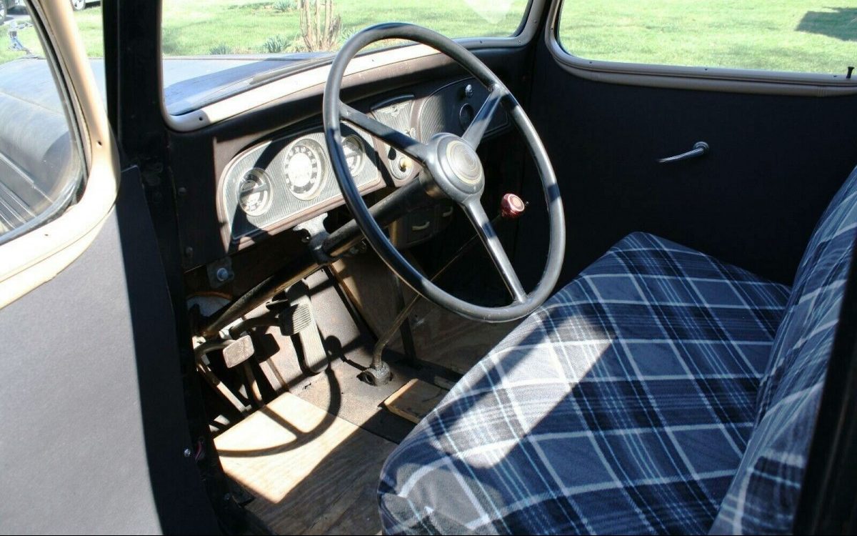 All the gauges and lights work on this five-passenger sedan. The windshield and side window glass is new and the front doors feature power windows. A five-foot tall shifter controls the three-speed manual transmission.