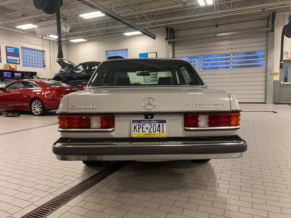 This particular one has the aforementioned six-figure odometer reading, but for these engines, that’s not necessarily a big deal. Kept properly, the OM617 5-cylinder turbocharged diesel can soldier on into the half-a-million-mile range, and parts are reasonably still available 35 to 42 years later. The seller tells us that the only thing needed during the nearly 1,000-mile trek was a fuel return line in the first few miles, that the AC compressor seized and was removed, there’s one spot of body rust but the underside is completely solid. The car apparently was sold new in central New Jersey at Ray Catena, a locally well-known high-end dealership, and followed its original owners to Daytona Beach, Florida. The seller flew from Philadelphia to Florida, bought the car there and, along with a few friends, drove the car back to within 20 miles of where it began its American journey.
