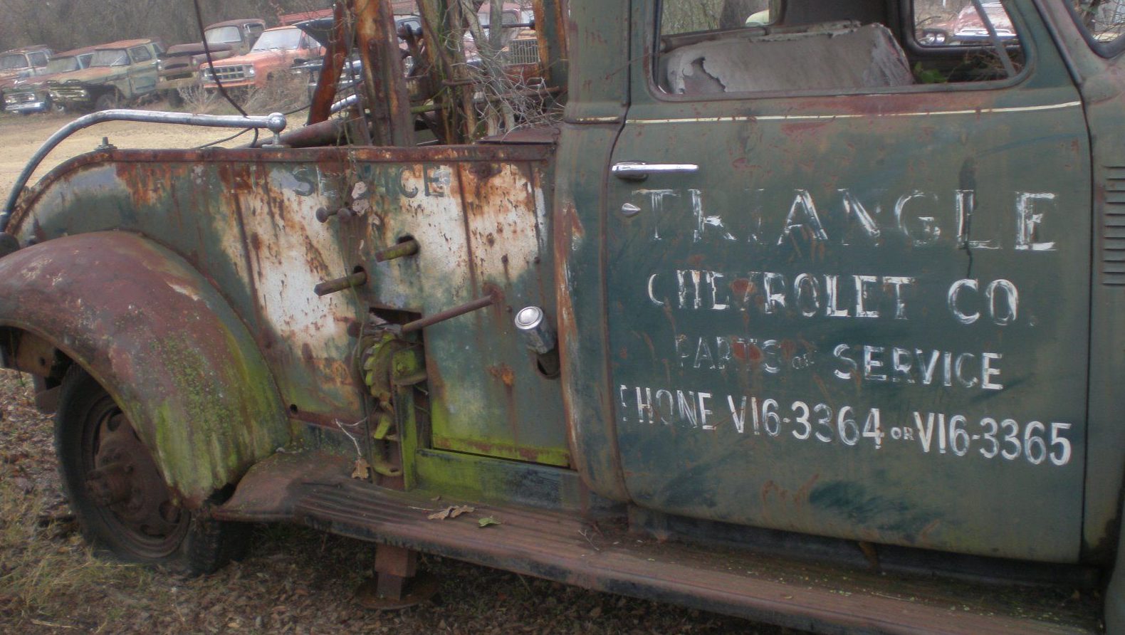I looked for a Triangle Chevrolet dealership in Colorado, but the only one that popped up was in Florida. While I’m sure this dealer is long gone (or operating under a different name), I get a kick out of thinking they operated pre-cursor to the modern day roadside assistance program. While OnStar may not have been an option, I’m sure this wrecker could have pulled damn near anything out of the brush. The rear fenders look rough but the body is holding up well for years of ourdoor storage.