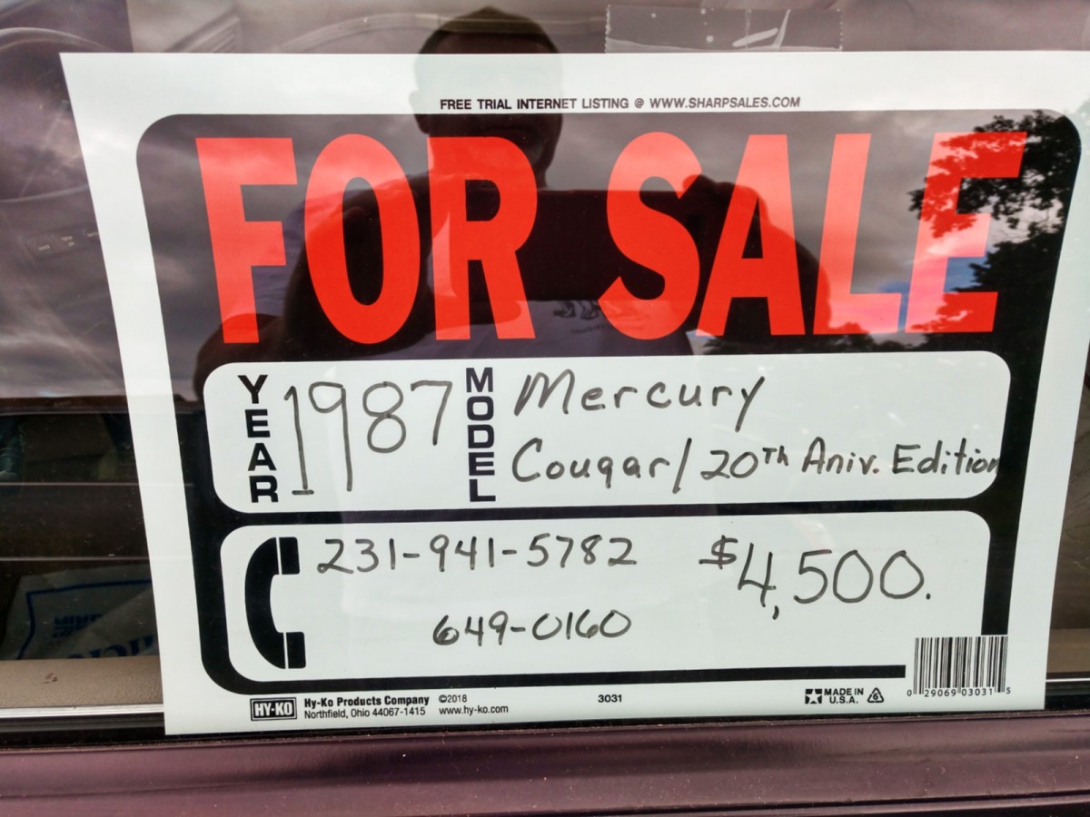 For the 1967 model year, Mercury launched its Mustang-based Cougar. While not as iconic as the car it was based on, Mercury had no problem selling Cougars 150k of them in the first year. Twenty years later, Mercury decided to commemorate the car’s birthday by building 5k special 20th Anniversary Cougars. These cars were tricked out, with the 4.9L V8, a sport suspension, limited-slip rear end, and power everything. You don’t come across these car’s often, but reader Dan B just happened to see this one in a parking lot in Traverse City, Michigan and it just happens to be for sale!