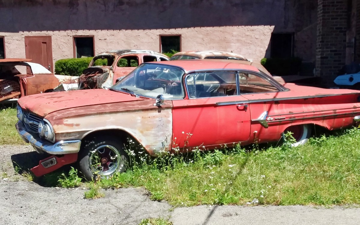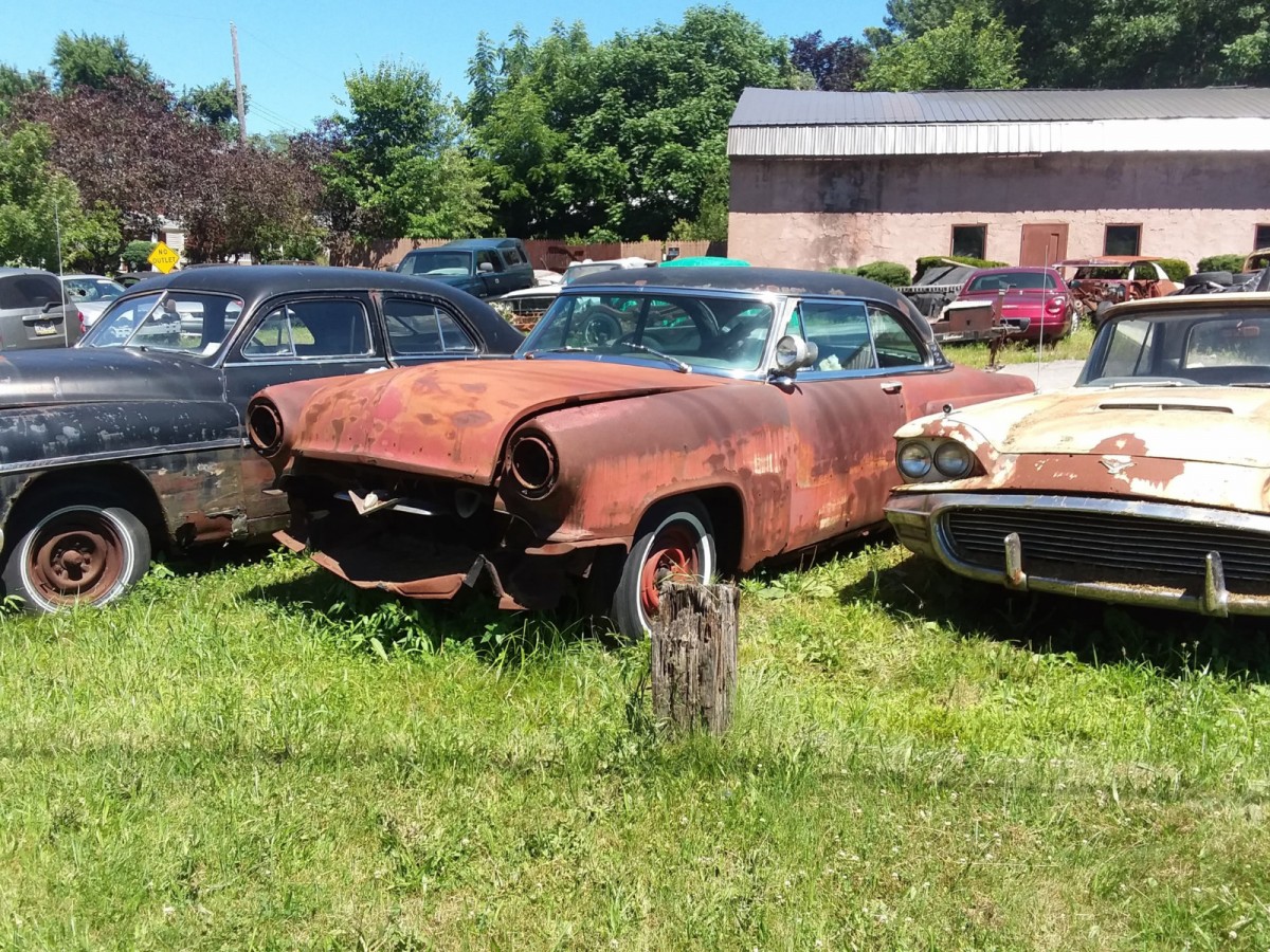 From Jim B – Found another roadside haul of cars….there are old Studebakers, old T-Birds, old Bonneville’s, Impalas, and other Chevys. This place has been here ever since I have been a young child and these cars are still sitting here in Hubbard, Ohio.