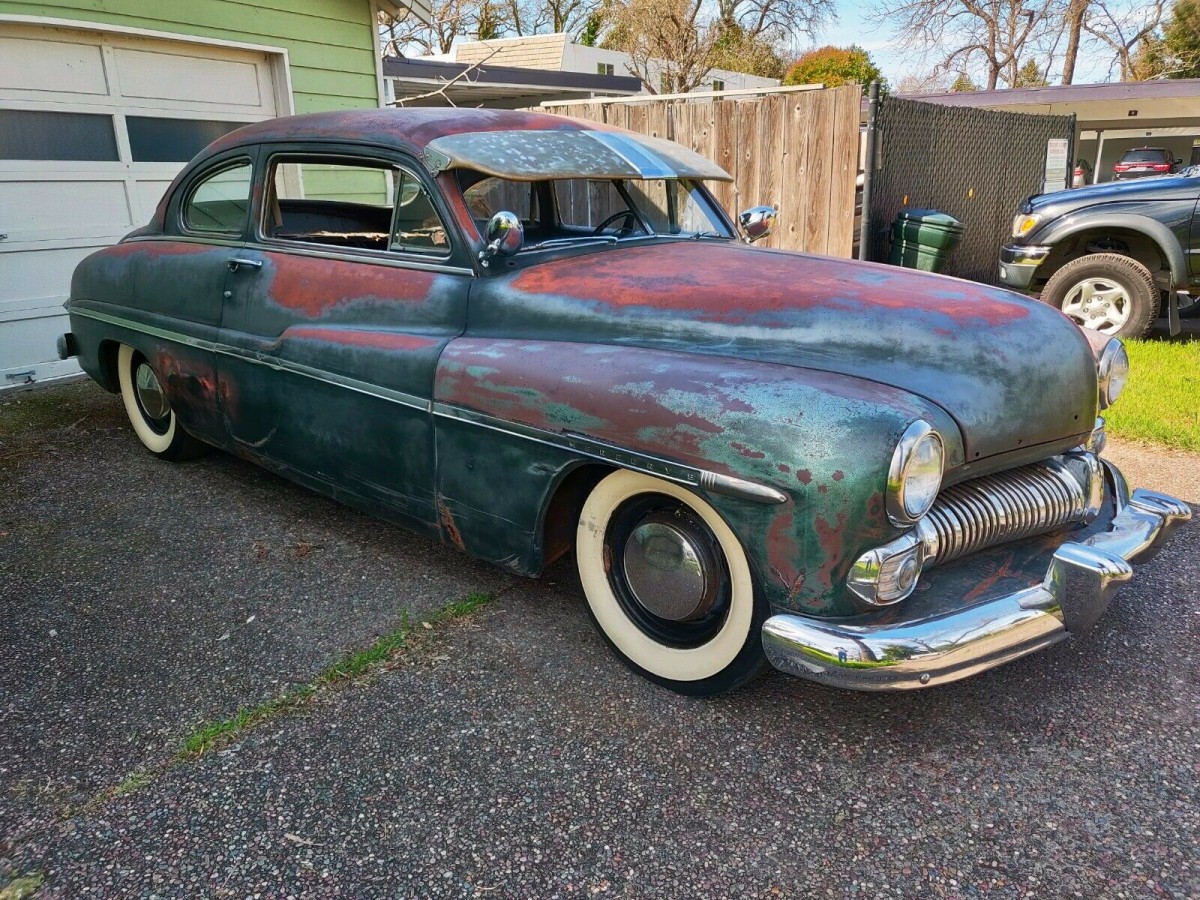 Patina is one thing, a 50 Merc 2 door is another. I’d rather see it all cleaned up and redone in black. Add some fender skirts to it, a nice interior and you have a cruiser to be admired. I would not lower it or alter the top, just make it look and drive pretty.