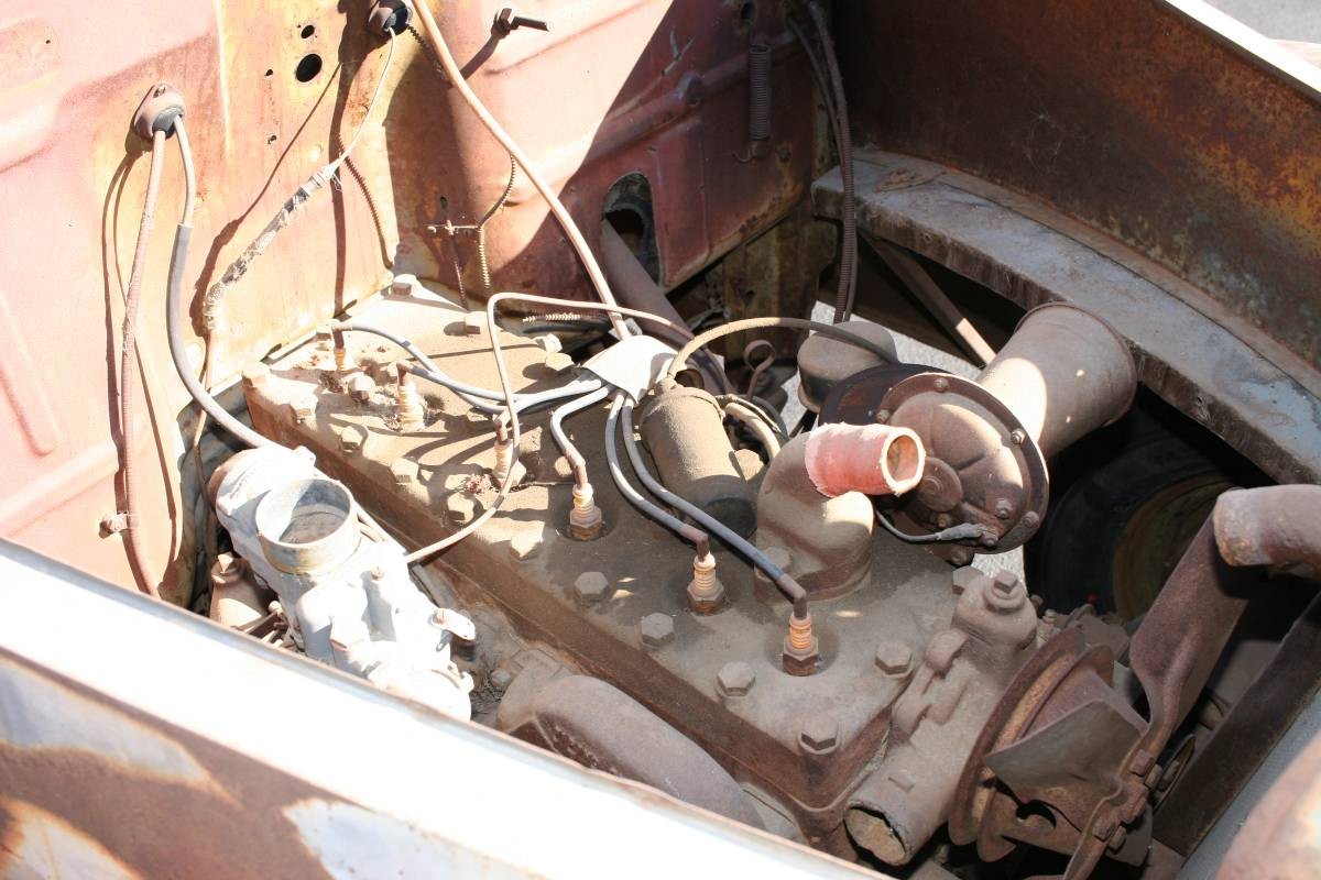 Under the hood resides the original flat head six that has not been touched by the seller his entire 7 years of ownership. Needless to say, the condition of the drive-train is unknown. The engine, transmission, and axle area all there, and the truck does roll and steer well. In the engine bay, there is some surface rust, but there is no evidence of rot. Overall the engine appears fairly complete, but I would imagine there are certainly some small items missing.