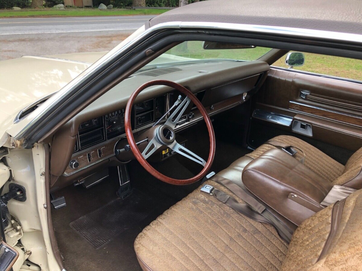 The nice things about this generation Riviera was you could get them all luxury or all sporty or a combination of the two. I would classify mine as luxury/sporty as mine had bucket seats and console with a really weird “cicle” shift lever. Vinyl top, skirtettes, 455-4, p/s, p/b, p/w, p/l, 8 track am-fm stereo. Once I removed the vinyl top it looked even sportier.