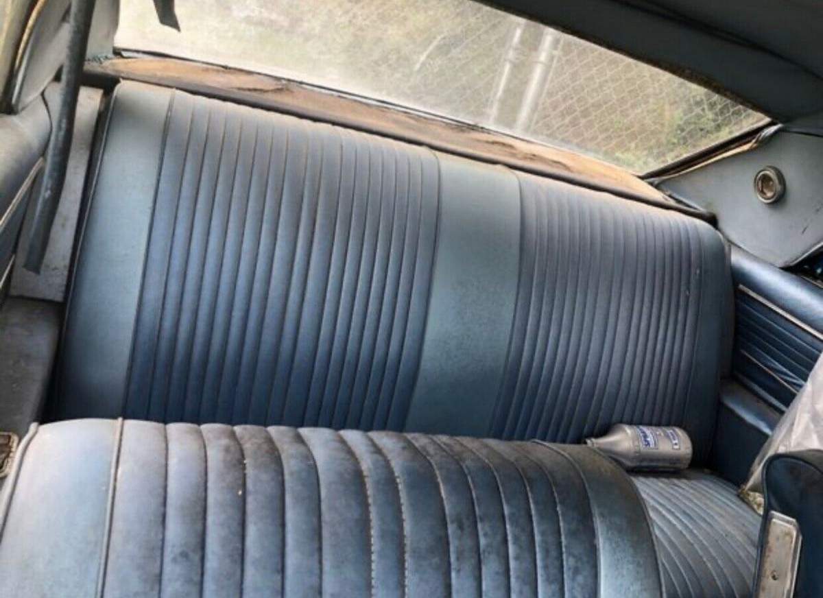 From what we can see of the interior, it appears to have held up pretty well, but it’s really dirty and is going to need a good scrubbing. That process would reveal whether the headliner or carpeting will need replacing. The driver’s side door panel at a minimum is going to need work.