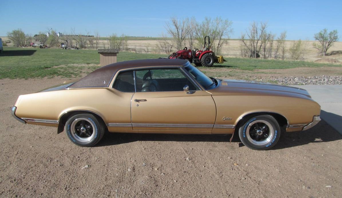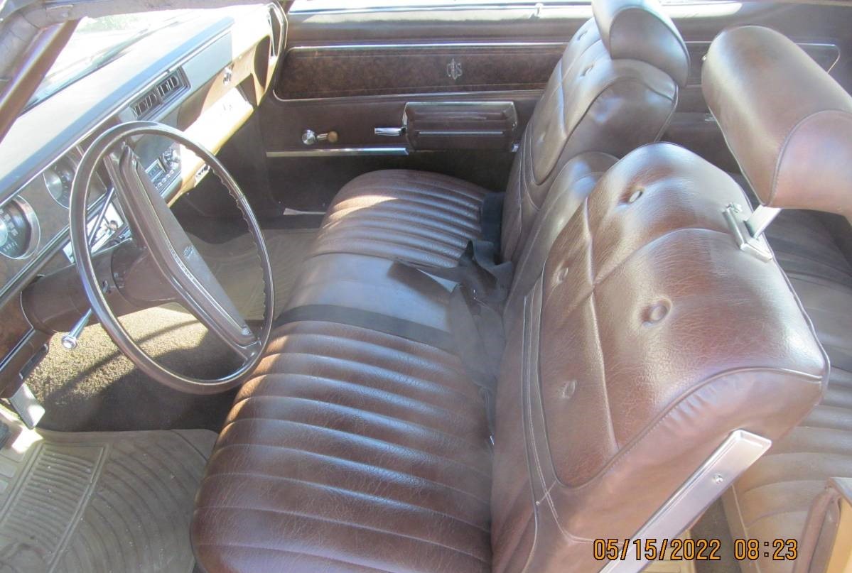 I do not like the color scheme..give me a cheerful light blue or red anyday..not a saddle. The bench seat is the durable but sticky hot in summer and cold in winter vinyl not sporty bucket seats with automatic floor shifter. The mileage is quite low for a 52 year old model…need some provenance to authenticate it. A 4 barrel carb would give the old Olds some more zip although in 1970 the Rocket V8 was at its zenith. I especially love the upgrades to the car (modern air conditioning and disc brakes for example). The attractive body style of the 1968 to 1972 Cutlass brings back youthful memories of seeing GM mid size cars everywhere when they dominated the sales charts. If this was a Chevelle 2 door I believe it would be more valuable today and have more reproduction parts available. Still worth a look.