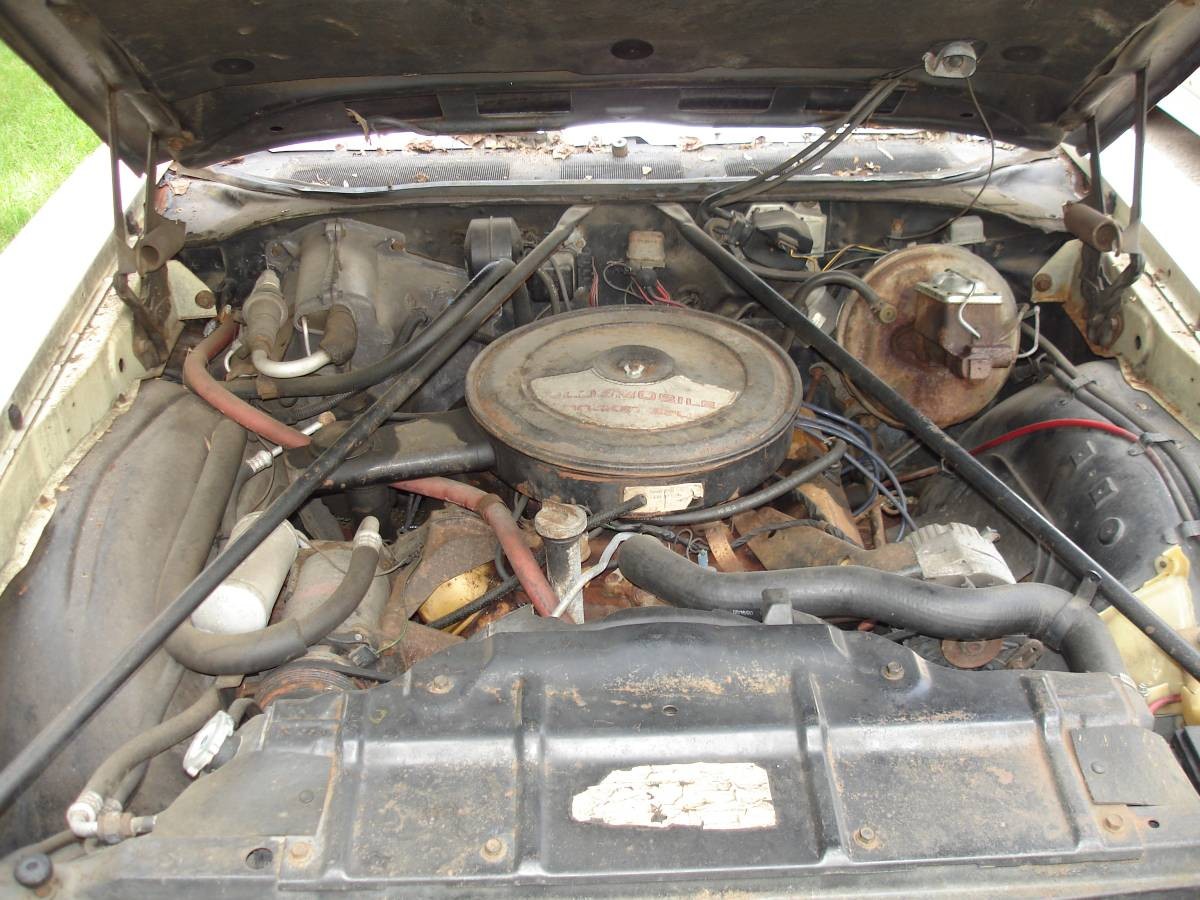 The listing for this one is rather thin on details, save for mentioning 123,000 miles, two owners, and “runs good”. The pictures show a cream or beige exterior, Rocket 350 with AC, power brakes, automatic transmission (likely the TH-350), “cooling-tower” wheel covers, light-colored vinyl seats, brown carpet, and dark green dash. It’s difficult to tell from the photos whether or not it has the AM-only radio, or if it has the optional electric clock in the dash cluster.
