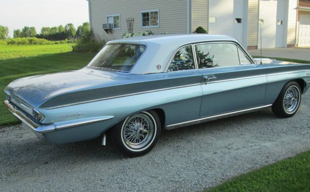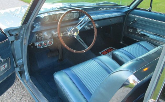 The seller’s car is one of about 32,500 coupes produced in 1962, the car’s second go-round. The odometer reflects 57,000 miles, of which 2,500 have been added since the restoration. That sounds rather low to need a complete makeover, and we don’t know what the Olds looked like before the refresh was undertaken. Spoke wheels were added to augment the super nice white over blue two-tone paint. The interior looks stout, as well, and includes an aftermarket set of gauges.