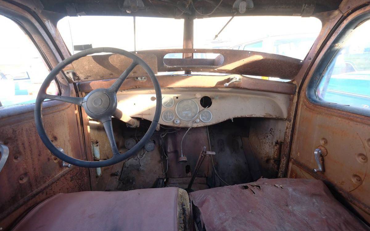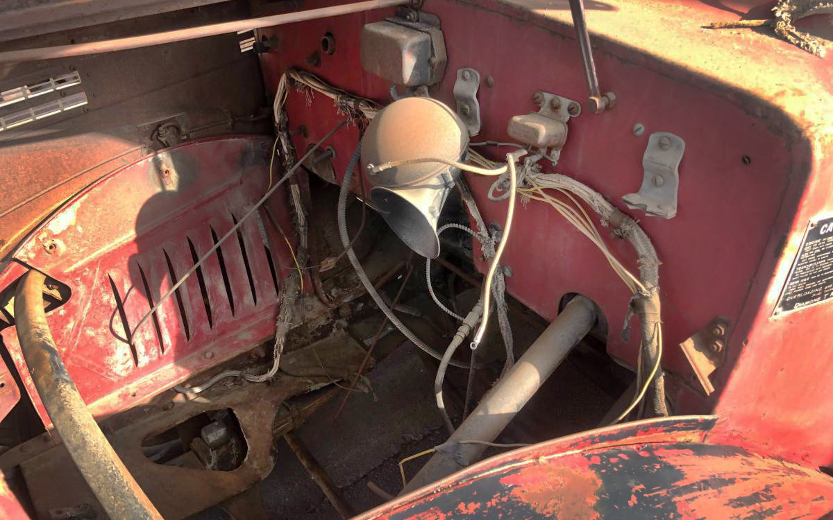Here is where things go off track. This otherwise good looking Diamond T Model 201 pickup has no drivetrain. That’s why the seller is only asking $6,500. It should have had a 236 cubic-inch inline-six Hercules engine with just about 90 hp. A 3-speed manual would have been standard with a 4-speed optional but now it has nothing. How would you restore this one, with a period-correct drivetrain or with something more modern?