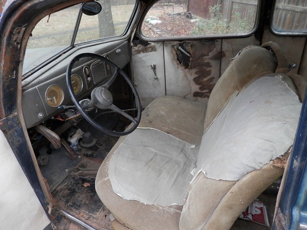 From what we can see, the body, glass and trim look quite good, usable and presentable as is. At this point the future for the car could lead to either restoration or street rod. There are no underneath pictures, but with no visible major concerns on top hopefully there are no problems below. There are several restoration companies which seem to specialize in these years of Fords, so a minor patch panel should be easily obtained and installed by anyone competent in MIG welding. Also, these companies sell kits to update the brakes to a hydraulic system.