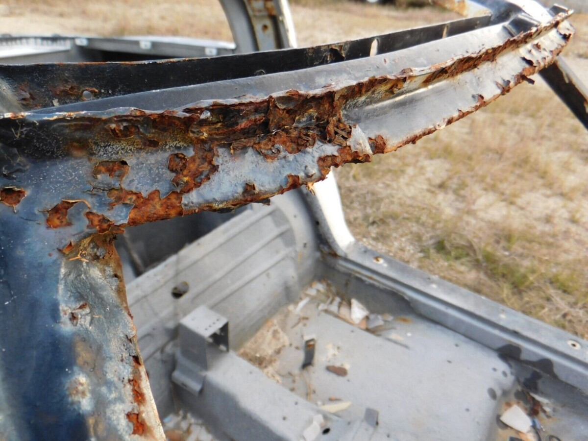Although there isn’t much to this Corvette, a few factors are worth considering. The seller indicates a previous owner stripped the car around eight years ago, planning a total frame-off restoration. They cleaned and refinished the frame, adding new suspension bushings and other parts before abandoning the project. It has sat in the weather ever since, which has taken its toll on the frame paint. Regardless of what the future holds, the buyer would need to repeat the process. However, they would be doing so with a rock-solid frame. The remaining fiberglass looks okay, but we can see significant rust in the upper windshield frame. It is repairable but would require specialist attention to ensure it is safe.