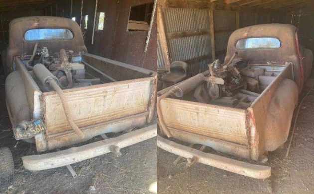 This 1949 truck is a true barn find that the seller describes as being in “salvage” condition. That’s likely because the drivetrain was pulled out (why?) and now sits in the back of the pickup. Perhaps a restoration was in the plans at some point, but things changed, and work never got off the drawing board.