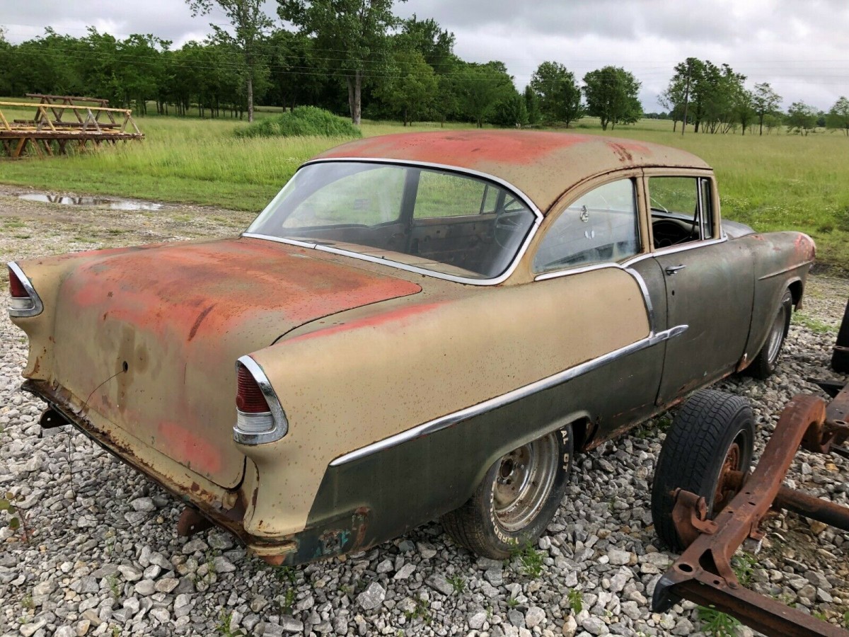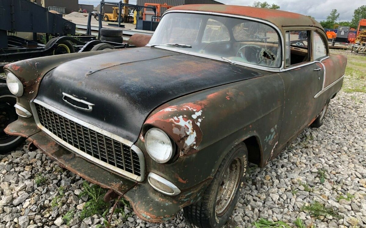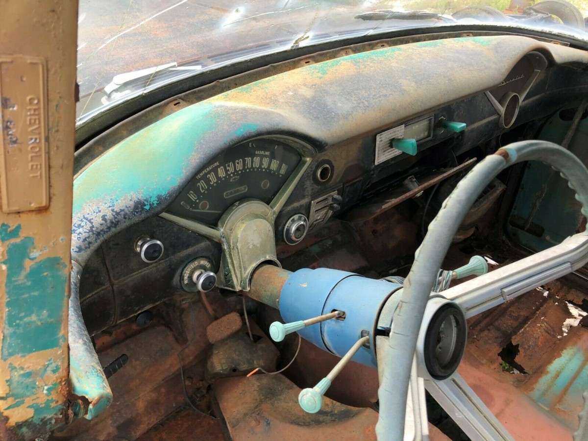 All Chevrolets got a new chassis in 1955 and a small-block V8 engine would finally arrive with a displacement of 265 cubic inches. While that motor was available in any Chevrolet, most 150s and 210s likely came with the “Blue Flame” inline-six. We don’t know which of the two powerplants started in the seller’s car but it likely was an automatic given the pedal configuration under the dash. The drivetrain is long gone in this Tri-Five, so the buyer has something of a clean but rusty slate to work with. Out of nearly 1.8 million Chevies that were built in 1955, exactly 250,000 left the assembly lines as a 210 2-door post sedan.