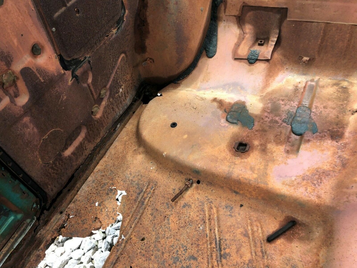 Due in part to being outdoors for some time (the seller has owned the car for five years), there is plenty of rust that the seller is not shy about. The floorboards are shot, and part of the trunk floor is said to be good, although the lid was wired down after some pics were taken and won’t reopen. There is a bunch of stuff inside the trunk that will go with the car as a result. The rear quarter panels have issues at the bottoms behind and including the doors and the rocker panels are also rough.