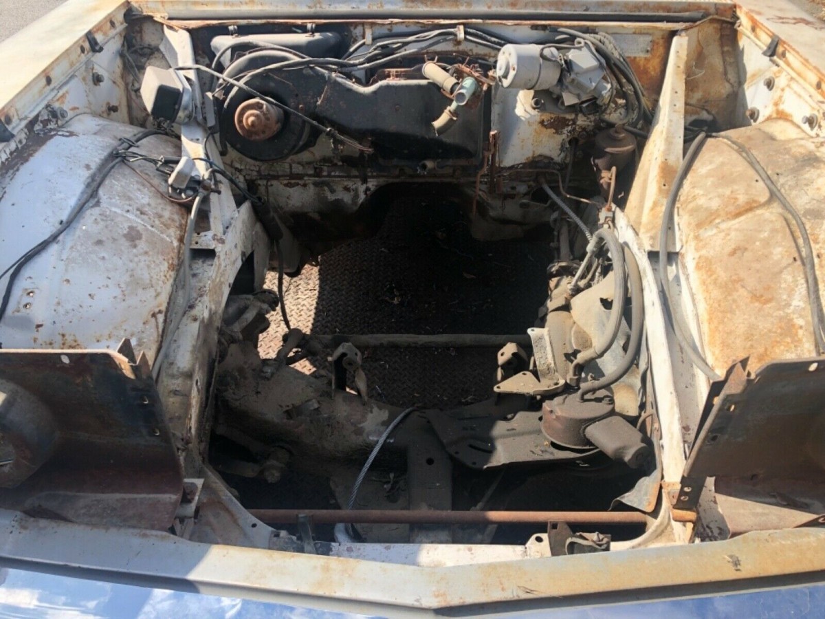 Changes for the car’s second year were minimal. F-85’s sold in 1962 with an automatic transmission had a new and unique 4-speed Roto 5 Hydro-Matic transmission. That’s likely the transmission that was in the seller’s car but was relocated to the luggage compartment when the engine was removed. The seller of this convertible doesn’t offer much information other than confirming that it’s a project and it comes with a clean title. It was probably sitting out in a field and the seller agreed to tow it away.