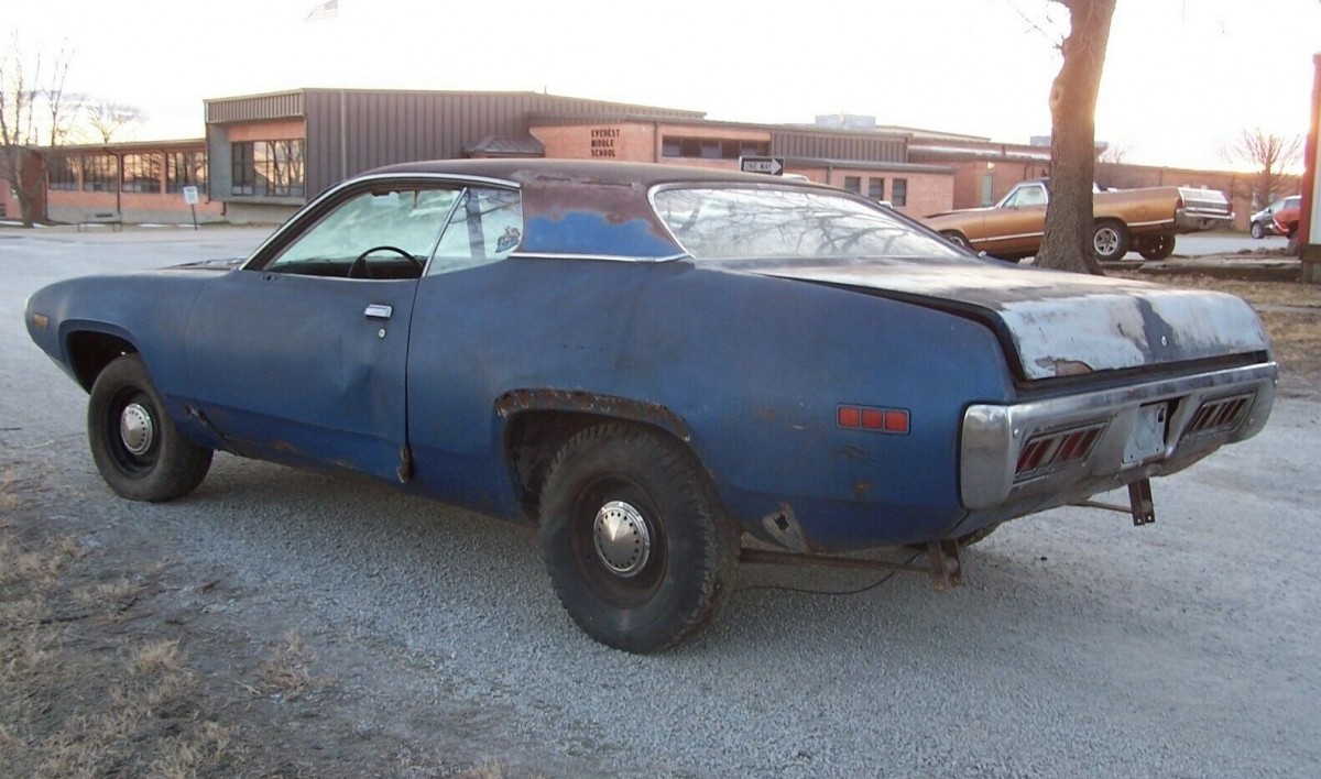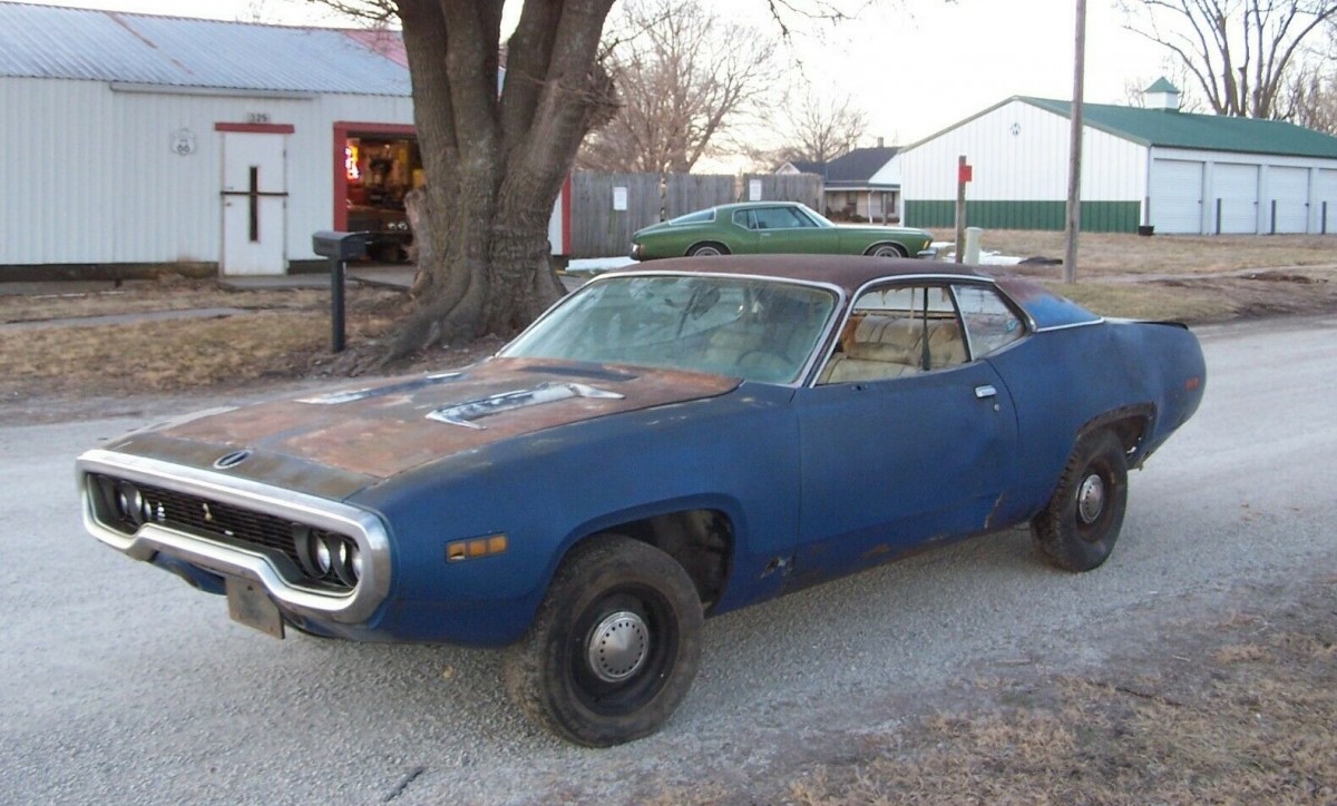 Chrysler’s intermediates were redesigned for 1971, including the Road Runner and its upscale cousin, the GTX. The bodywork now had a more rounded “fuselage” look along the lines of other Chrysler styling trends of the day, which included a steeply raked windshield, hidden cowl, and deeply inset grille and headlights. These changes did not help sales and muscle car popularity had begun peaking anyway. This two-tone blue ’71 Road Runner is a roller with some sheet metal issues to resolve – and the engine and transmission have been pulled. The car is located in Everest, Kansas and available here on eBay where the reserve auction has reached just $1,222.