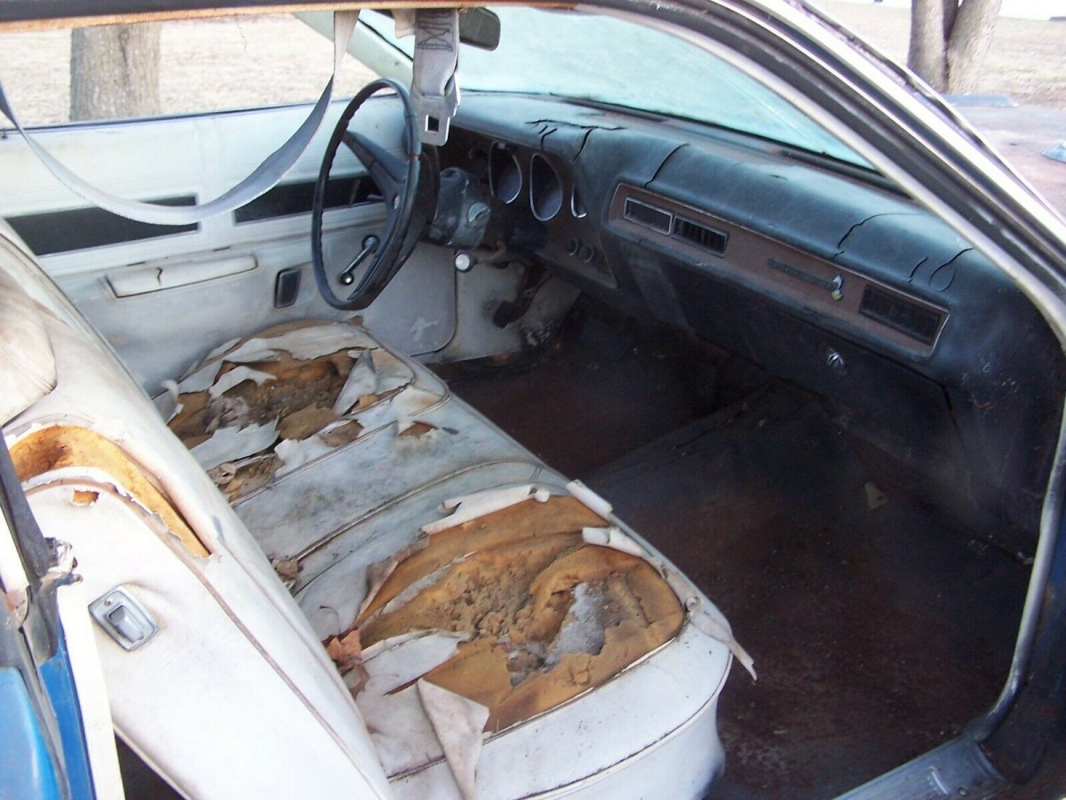 This Road Runner looks to have been two-tone blue with a white and blue interior. Sadly, most of the interior will have to be pulled and redone from scratch. Seats, door panels, dashboard – all are victims of the passage of time and significant prior use. A 1971 Road Runner with a 383 is valued at $44,000 by Hagerty if in Concours condition, with Fair being $19,000. But a rusty roller with a questionable drivetrain and in need of major work should come at a fraction of that – or will it? Oh, don’t get your heart set on keeping those dog dish hubcaps – the seller is keeping those.
