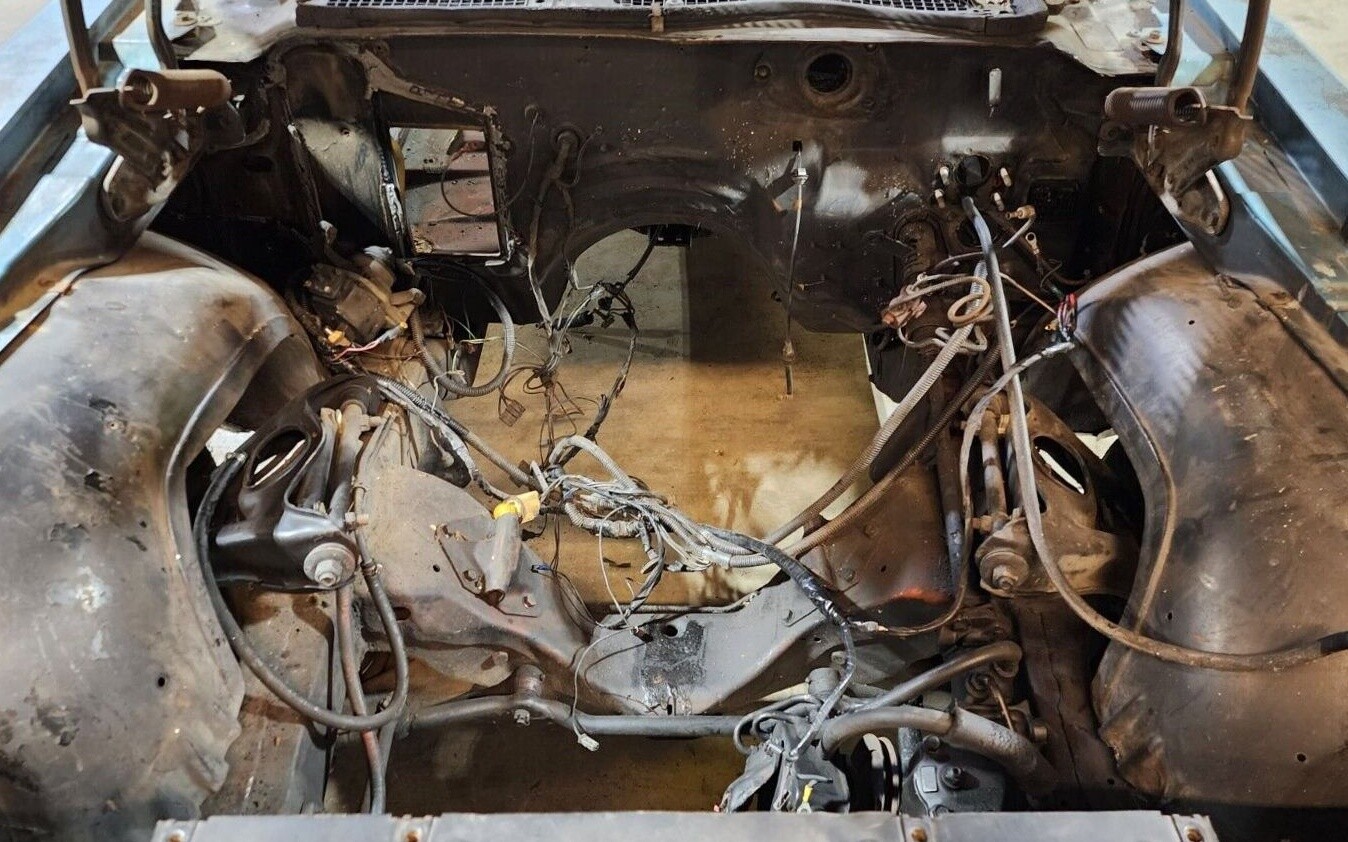 The seller doesn’t tell us what motor this one originally came equipped with, but fortunately, he does provide a VIN which indicates a 350 V8 with a 2-barrel and single exhaust, so if your plans are to put everything back to stock specs that’s what you’ll need to be on the lookout for. But he also throws out the idea of adding something more potent under the hood such as an LS, and since this one will never again be a numbers-matching car again it seems like an ideal candidate for a heftier powerplant.