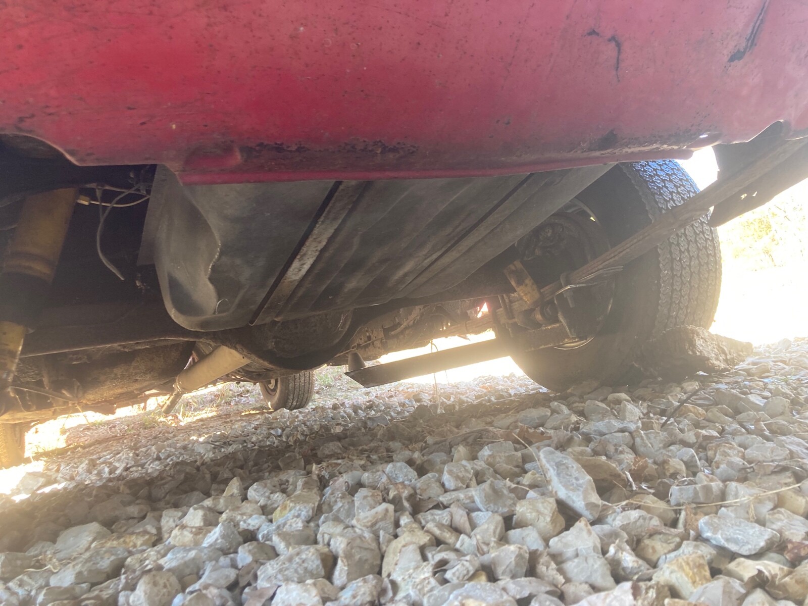 While the underneath side doesn’t look great, it appears better than I was expecting, although my expectations were not very high. The seller says that the front rails and supports look OK, but the rears might need patching, or better yet replacing. We do get a photo from the rear end as well, which again doesn’t look as bad as my perception was leading me to believe it would, and what 70s kid can’t appreciate those air shocks and traction bars!