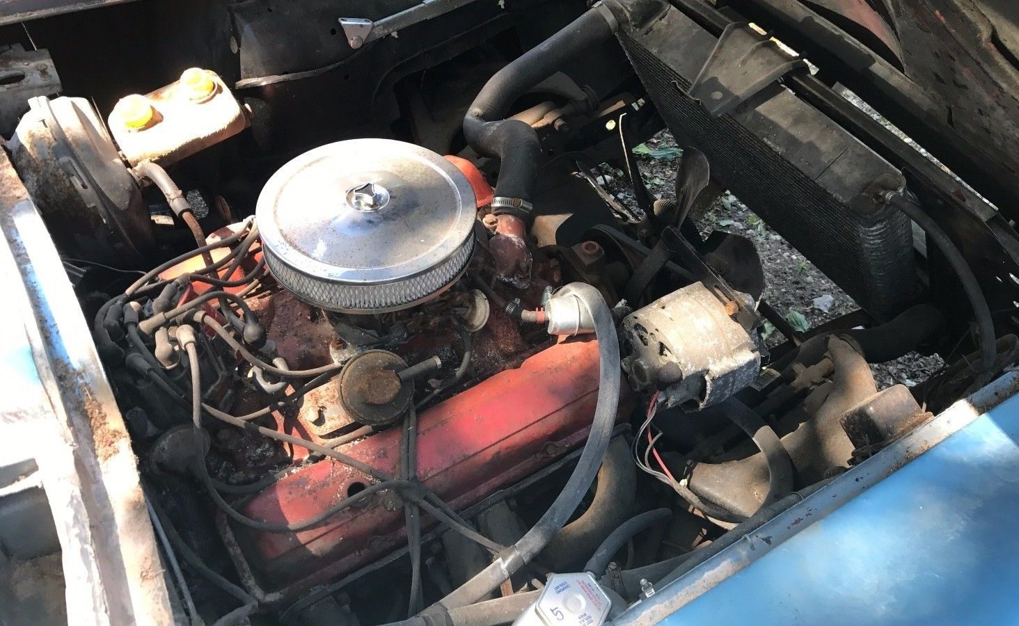 The Corvette came from the factory as a 327 / 4-speed car, but it currently registers as non-numbers matching. The seller doesn’t elaborate as to whether the original mill is available, but it looks doubtful. This Corvette went into storage in 1975 and hasn’t moved since, according to the last-stamped registration documents. The engine bay is surprisingly clean, and doesn’t appear to have been used as a rodent’s winter home.