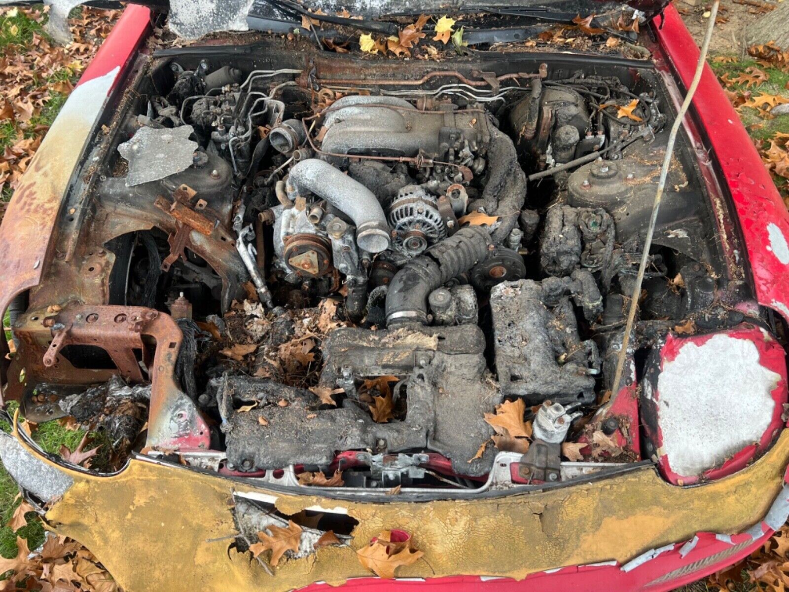 If you’re repairing a totalled in the rear car, this is worth what? The entire front end is a rebuild and metal replacement here. There’s more rubber and plastic than meets the eye … Now missing. Reserve not met at $6k? It’s not a Ferrari. Be real. Rebuilt Title = Fractional Value. Rebuilt as a race car? That’s all I can assume, but again: Wiring harness, lights, all suspension parts, vents, hoses, sensors etc etc… if you try to restore it for street use: It’s cheaper to buy one ready to go, even if it’s high mileage. No, the automatic transmission won’t be ok. Before sensors and friction plates were torched, he was running high boost high HP, so you can assume it was suspect fire or not.