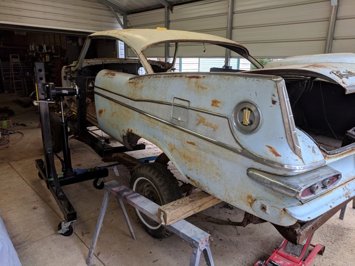 What’s tough about buying a basket case like this is figuring out what goes where, especially when it comes to bolts. If there not labeled your in for a lot of trial and error. These fury’s are gorgeous cars when restored this one is not for an amiture. Sadly when a car is in this state and the project stalls its at great risk of never being reassembled.