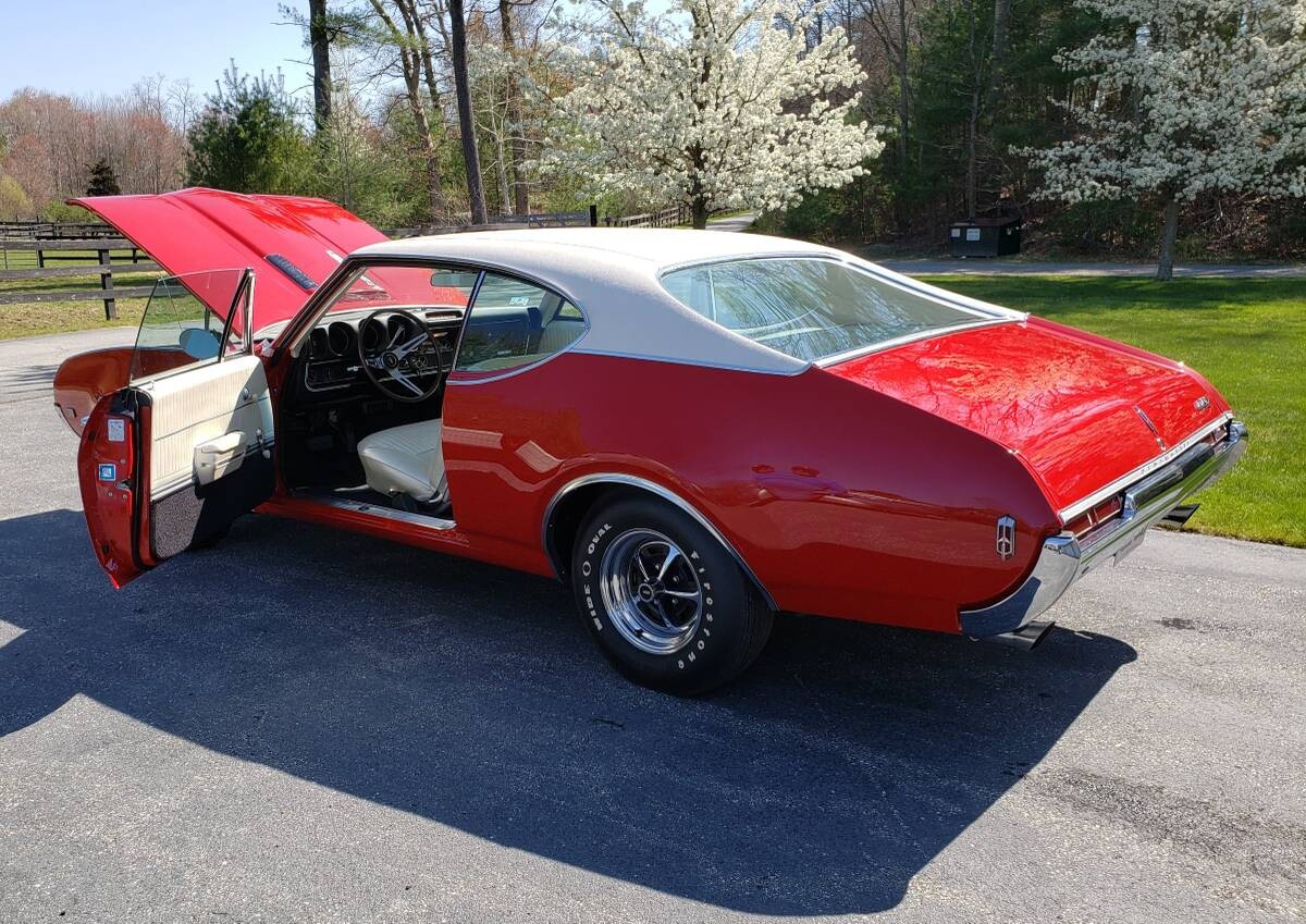 When the seller tackled this restoration, they kept their eye focused on the details by using the excellent information they possessed. As well as the Trim Tag, they hold the original Window Sticker and Dealer Documentation. After dismantling the car to the last nut and bolt, they treated it to a rotisserie restoration where nothing escaped their attention. It wears stunning Scarlet paint, complemented by a White vinyl top and decals. The paint shines beautifully, cloaking panels that are laser straight. The gaps are as tight and consistent as you could hope to find on an Olds of this vintage, but the beauty is more than skin deep. The underside shots reveal floors that are clean enough to eat off and a spotless frame. The tinted glass is as flawless as the rest of the exterior, while the chrome is in as-new condition. The Magnum 500 wheels are a later addition, but purists would have no trouble locating the correct wheels and Deluxe covers if these don’t appeal.