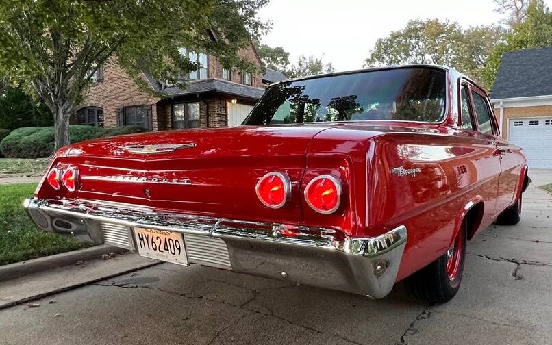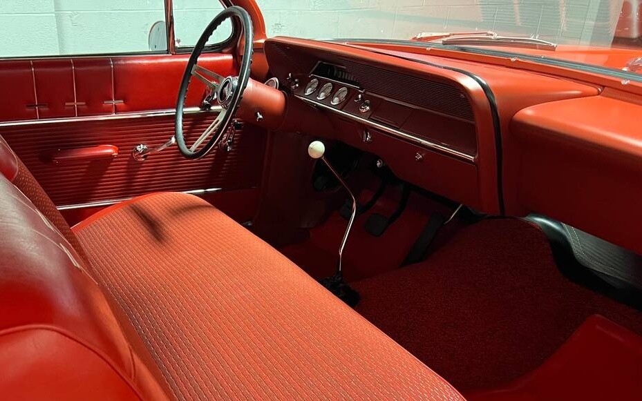 The seller starts by claiming his Biscayne is like new from top to bottom and goes so far as to say it’s one of the finest examples in the world. That’s a tall order and some large shoes to fill, but at minimum, the car is certainly one of the nicest examples I’ve come across in a very long time. No expense was spared in the rotisserie restoration, with the body stated as laser straight with tight gaps, plus that Roman Red paint is looking mighty fine all the way around. The red wheels and dog dish caps complete a minimalist appearance that’s just hard to beat, in my opinion.