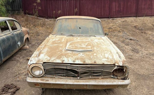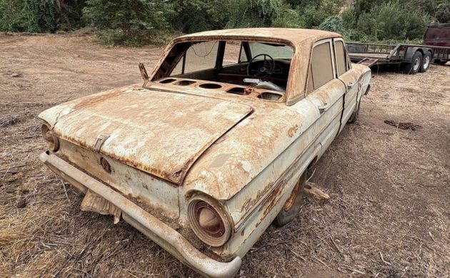 The photos show a car that’s had a long, hard rest. The body carries dents, dings, and signs of wear throughout, while the interior appears largely missing or in very rough shape. The Falcon wears the kind of patina that only decades of neglect can produce, giving it an authentic “found it just as it was left” look. The VIN, 3R02U13715, confirms its 1963 origins, but beyond that, it’s up to the buyer to decide which direction to take this project.