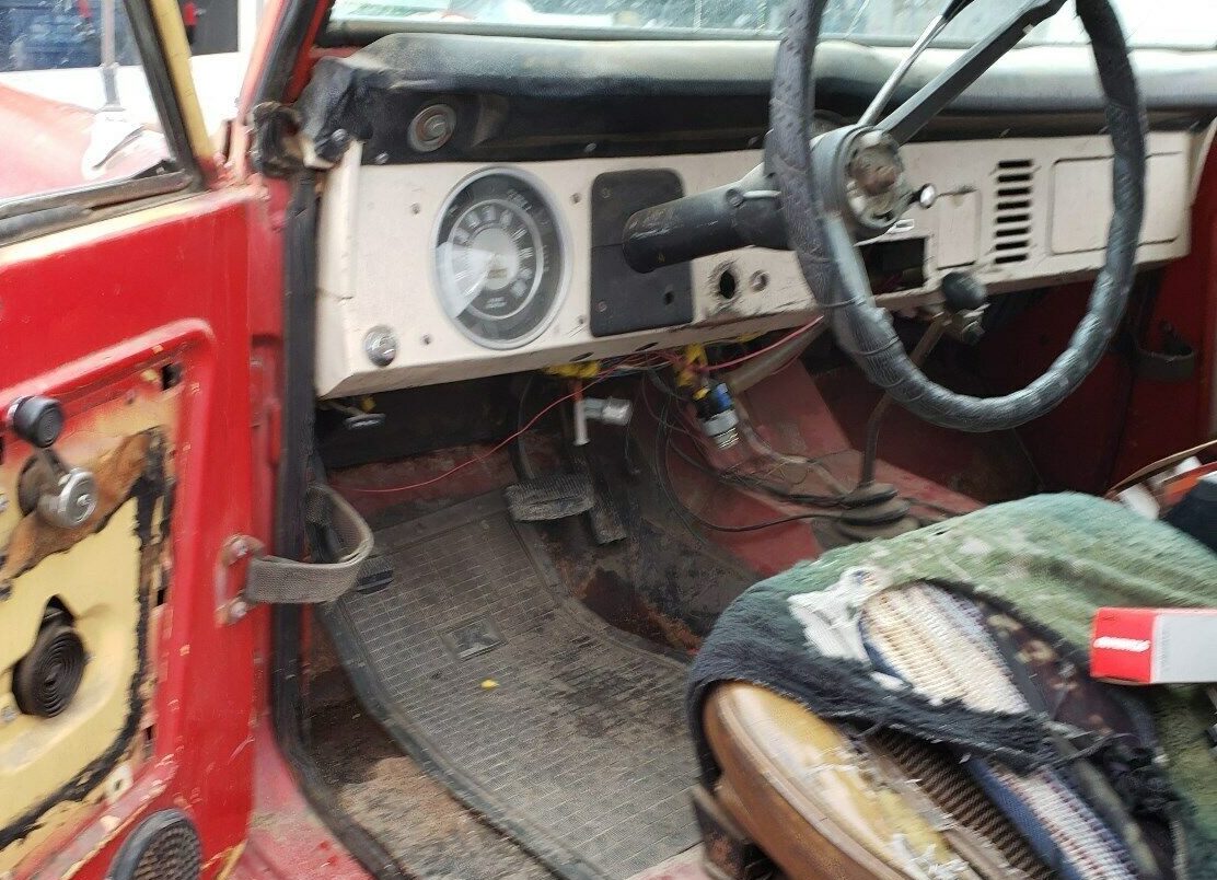 The interior is another area I’d want to restore, likely a “Phase 2” project once the bodywork is done. he front seats are likely pretty torn up, and they don’t match the white vinyl rear bench. The seller notes he is including a new white seat cover for the rear bench, and I personally love the idea of a red Bronco with front buckets covered in matching white vinyl. The door panels look like they could also stand a do-over, but the seller’s list of outstanding issues put some items higher on the list of priorities than a mint interior. The transmission shifts roughly, the gas tank filler hose leaks, the ignition switch is damaged – and on and on. Still, it’s cheap for a runner, and the issues are manageable.