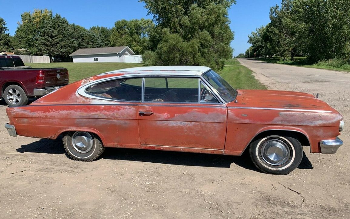 Hmm, let’s see, Scotty likes oddballs,,,check, in his home state of Minnesoty,,,double check, priced right,,,that seals it, got Scotty’s name written all over it. Okay, column shift, detract a few points, deplorable condition,minus many more, okay,maybe not, BUT, for someone that has the facilities, it’s a super find. The front shock towers look good, it might not be that bad. It shows, for Ramblers flagship, this one is pretty basic. Most Marlins were heavily optioned, I mean, why would someone buy a basic Marlin like this? I read, a new 1965 Marlin cost $3,100 bucks, or only $100 bucks more than the regular 2 door Classic 770, but I think most people, with such an odd car, wanted full options. Not here, apparently. You know, I rarely say this, but it would be kind of fun, to get it running, maybe add an O/D, clean the interior, and drive it as is. The single “Town & Country” snow tire on the drive wheel,,nice. I think people would almost expect an unknown car like this, to look like this. Since all the car painters left the planet, you may have no choice. Great find!!!