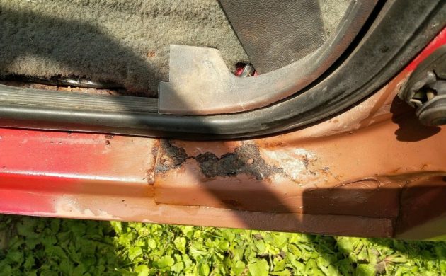 Now, the Lightning does comd with a salvage title, which can mean a few different things. It was possibly hit later in life when values had dropped off, or it was hit and only flagged as a generic F150 by the insurance company – in either scenario, the next owner will have to assess whether they want to take a chance on a damaged trunk like this rare Lightning, or wait for a better one. If the insurance company only totaled it because it was an older truck with moderate damage, then there’s a good chance it can be saved – but I’d want to see how deep this sill rust goes first.