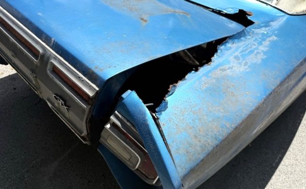The only valuable thing on the car is the VIN plate. The deterioration on the quarter panel next to the trunk lid, I’ve never seen that before.