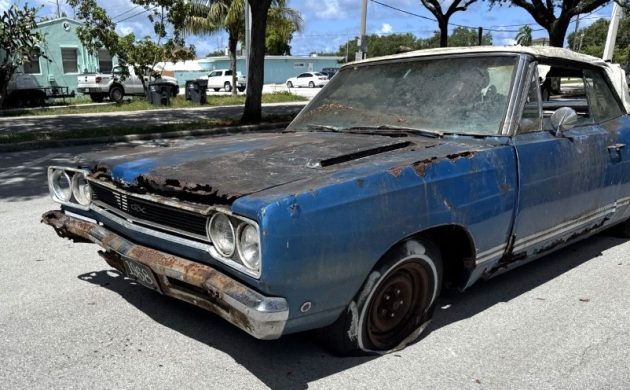 The GTX was Plymouth’s upscale mid-size muscle car offered between 1967 and 1971. It was the companion to the more budget-conscious Road Runner, which arrived in 1968. GTXs are far rarer today, especially as convertibles, as only 1,026 were produced in the ’68 model year. The seller’s “car” is one of them, but frankly, it looks more like it may have been sat on by Godzilla. Located in a parking lot in Fort Lauderdale, Florida, this ambitious project is available here on eBay, where the opening bid of $1,500 has seen no action thus far. Mitchell G. has a knack for finding unusual tips for our readers!