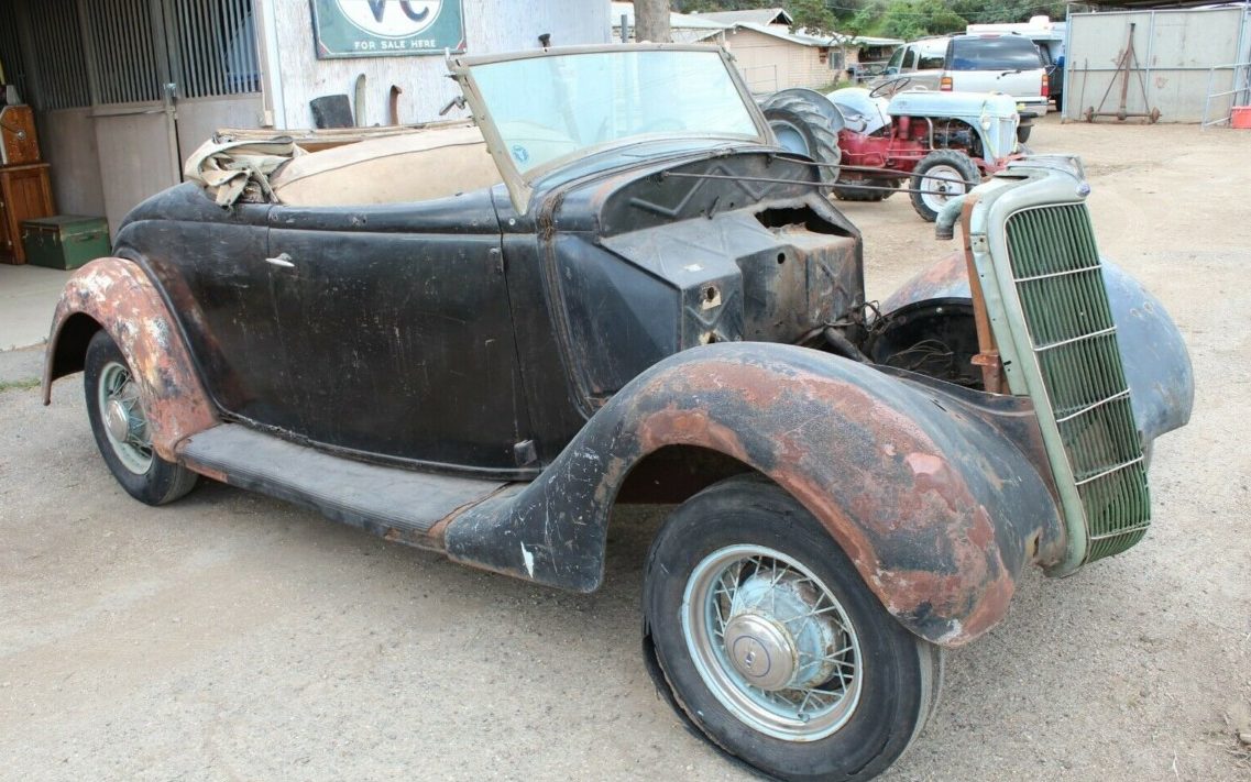 Cars with a backstory always stir up interest, especially when that story reaches far back in time. It can be a story about the car, its owner, places the car has been, who road in it, etc. That being the case, here’s one with a story, a 1935 Ford Cabriolet roadster, located in Silverado, California and available, here on eBay for $15,000, no bids tendered so far.