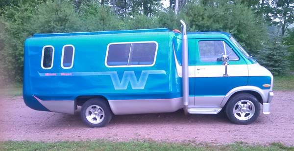 I kinda like it but it’s the wrong tonnage, wrong engine and pricey the way it sits. Now if it were a One Ton with a 383, I would convert it back to a motor home using lightweight materials inside with a composite material rear porch and a SunSetter retractable awning. Use the porch for hauling bikes,coolers, grill,etc. on the road, then for relaxing while parked. Great for tailgating at your favorite events also. MPG’s would be horrible but it would be fun.