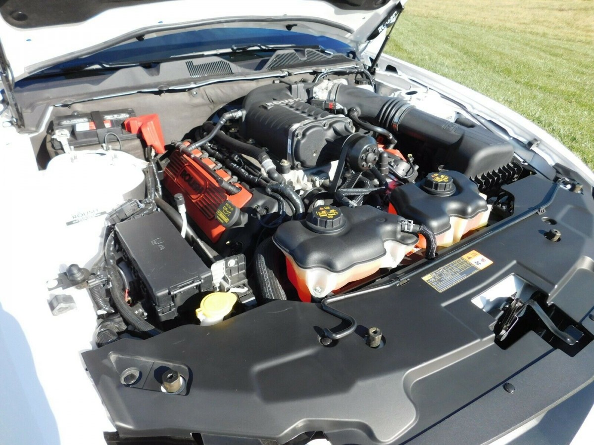 According to the listing, Roush only produced 53 Stage 3 convertibles in 2012, making this one of the more exclusive Mustangs you can buy. The engine isn’t overly detailed but it also likely didn’t need much in the way of clean up given the limited use. Roush incorporated numerous upgrades beyond the ROUSHcharger system that feeds 10 PSI of intercooled boost into the 5.0L V8 and hollow-chamber exhaust, including Rouch-tuned shocks and struts, stabilizer bars, front and rear springs, anti-wheel hop kit, and more. The body also benefitted from Roush enhancements, including a custom front air dam, side splitters, rear valence, and the aforementioned spoiler.