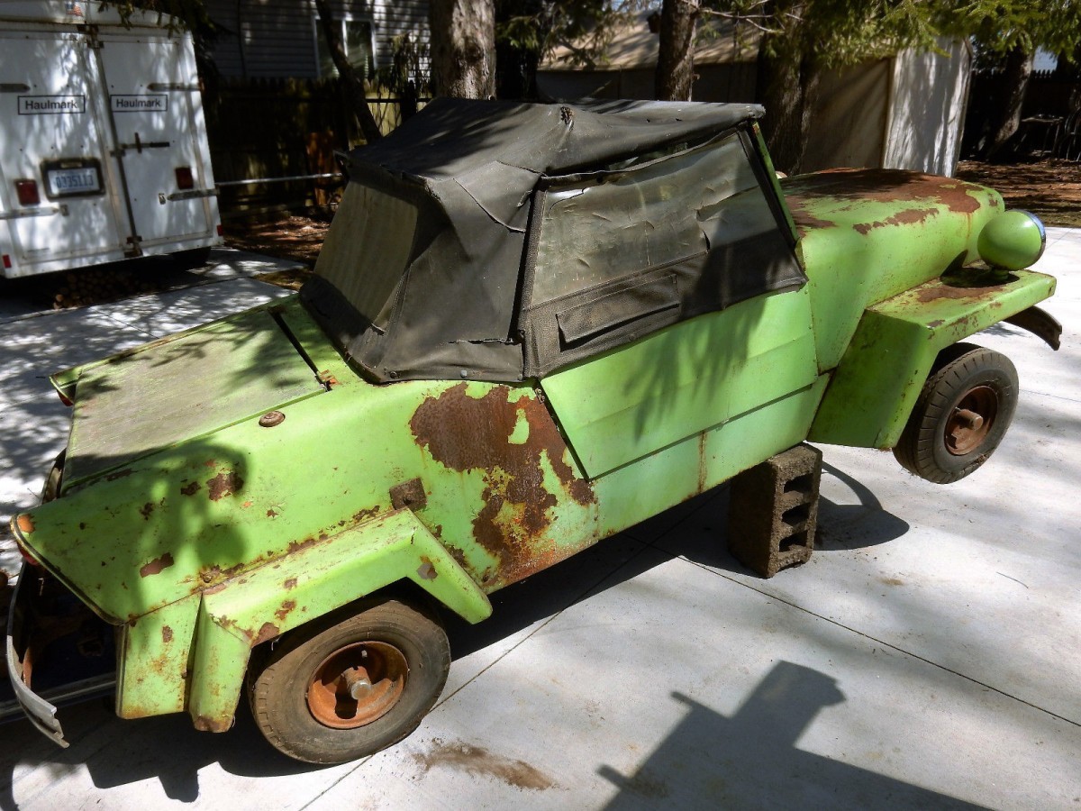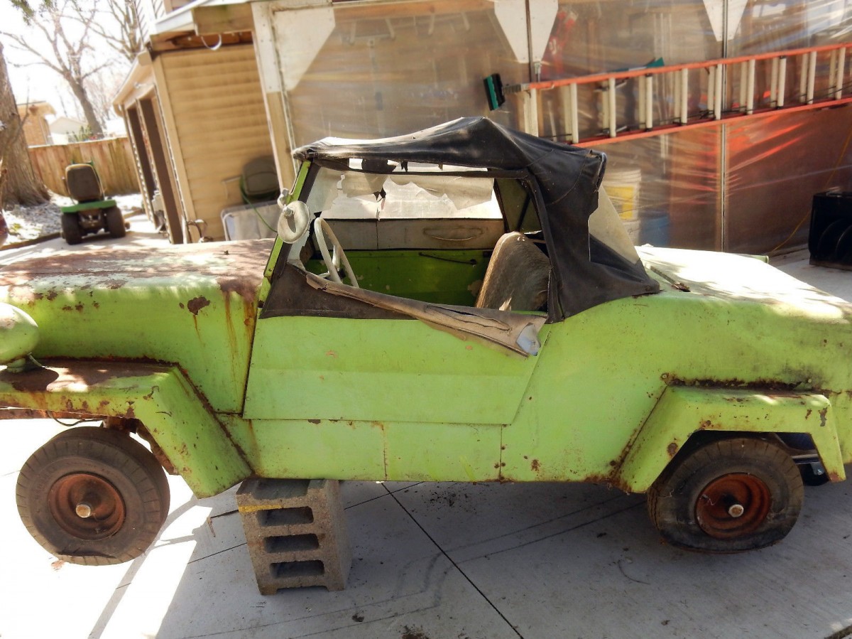 I currently own two, and have had two others, One was a nice driver with an upgraded 16ho Wisconsin and a comet torque convertor. The one I’m currently playing with, I was the high bidder on Ebay, April 3rd of this year. I bought it for half of the asking price for the one currently listed on Ebay. . It’s all original, runs and drives well. I give it a quick coat of paint, stitched up a new top, and put some golf cart hubcaps on it. They are cheap fun entertainment, but certainly not something you would want to do any long drives in.