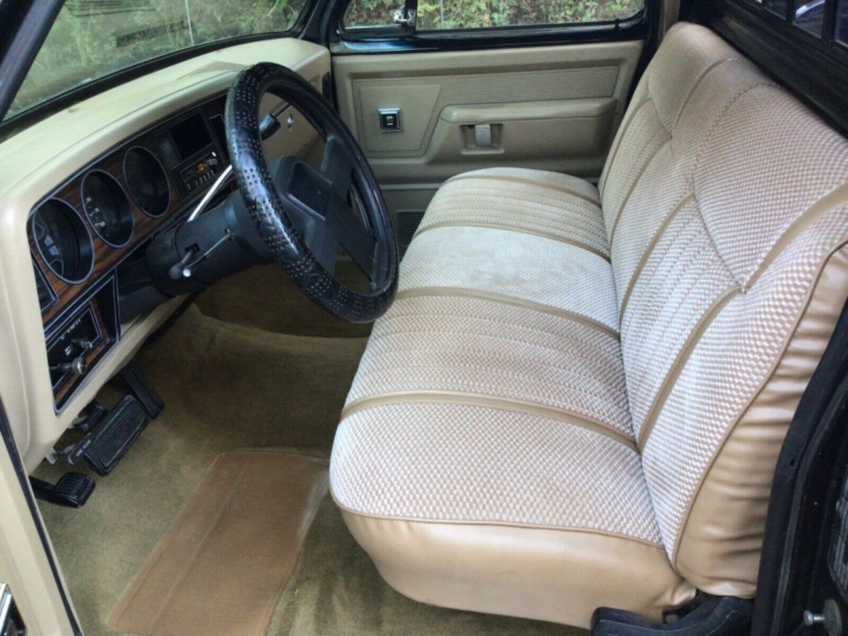 The D150 is one of the more venerable designs of 1980s trucks, right up there with the Chevrolet C10 and Ford F150. And like the others, it was used as a workhorse, entered into fleet duty for service providers, and often used by businesses that did the dirty work, from plumbing to construction to yard maintenance. That said, relatively few are left in any condition whatsoever, especially as a survivor. The Royal SE package got you a full assortment of power features, like the power windows you can see here. Other features included cruise control, power locks, and carpeting, and I’m guessing the fake woodgrain trim around the instrument cluster was part of the package as well. The upholstery looks to be in fine condition and the seller notes that’s because he had it redone in the correct Royal SE spec, along with replacement carpet.