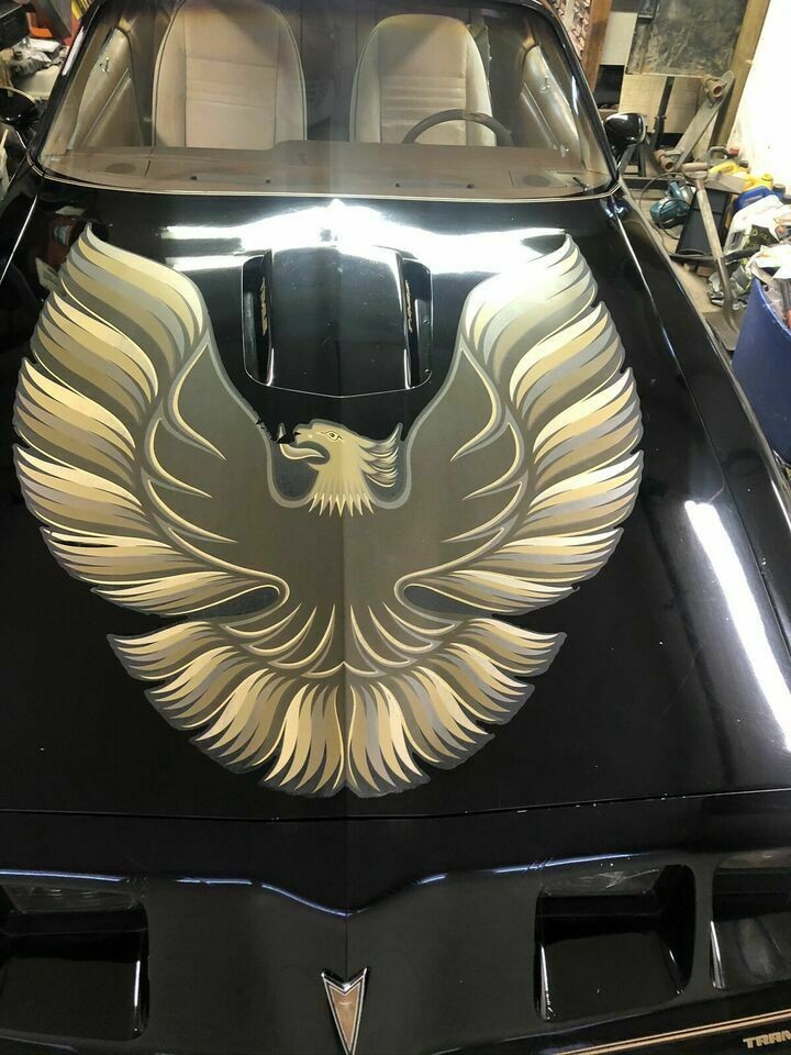 it really looks like it was waxed to near death. most of the pin stripes are polished away. any who, this BLACK TA would be the perfect gift for that GOTH loving grand son or GOTH loving grand daughter who really loves there nanny or there pappy. perfect for that cruising scene . and hey it probably gets decent gas mileage. dont even touch it. drive it the way it is . just watch that your lip chain or nose chain doesnt get caught in the decaying foam steering wheel. perfect for that connected family when nanny or pappy needs a ride to the grocery store. cruise it into the ground and appreciate every minute of it, or every mile of the drive. now thats a TA that you can love…