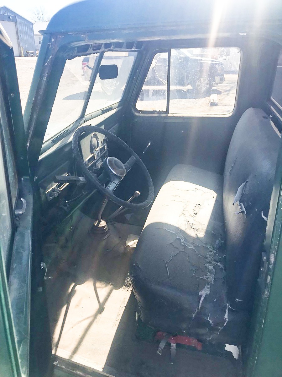 In the mid 80’s, I bought a ’54 Willys wagon that had a SBC, and was a crummy build ( I later found out) I saw’r a Willys pickup like this, a ’51 in a front yard with a huge plow, $500 bucks, I think. Had 19K miles, had a non-stock hole in the block, all the guy did was plow his long driveway( for like 40 years) until the motor blew. I didn’t want the plow, when he cut it off, the truck came back to original height( it weighed a ton) and I put everything from the wagon into the pickup. It was my daily driver and a fun truck. The problem here, like all vintage trucks, is gearing. With 4:88 gears,( sometimes 5:13’s) 45 mph was about it, and the SBC didn’t like that. I found out, Wagoneer 4:11 rear axle would work, but something with the front springs, wouldn’t accept the front axle, so I had like 4:11’s in the back, and 4:88 in the front, which made it more roadworthy, but couldn’t use the 4 wheel drive, which was fine by me, I never used it off road anyway. Except for minor changes, the Willys pickup remained unchanged until 1964 when they stopped US production. The ’54 here had a different grill,( 3 horizontal bars instead of 5) a big back window, and the model number changed from 475 to 6-226 with the introduction of the 6 cylinder. Overseas I think, went into the 70’s. It’s a great find, the color may suggest a municipal vehicle, and a lengthy list of updates awaits the next owner to bring it up to todays standards, and that won’t come cheap.