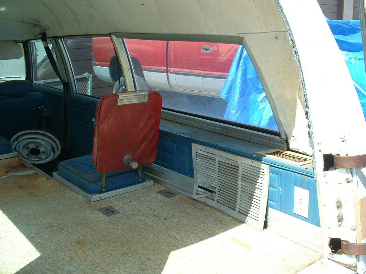 Mechanically, the ambulance is stock-Oldsmobile, with a 455 cubic-inch “Rocket” V8 and automatic transmission, power-assisted front disc/rear drum brakes, power steering, and air conditioning (its components are long gone). An extensive list of items that have been repaired or repaired to make it roadworthy again include new tires, hoses, belts, alternator, battery, brake parts, suspension components, and a litany of other things. An exhaust leak around the manifold still needs attention.