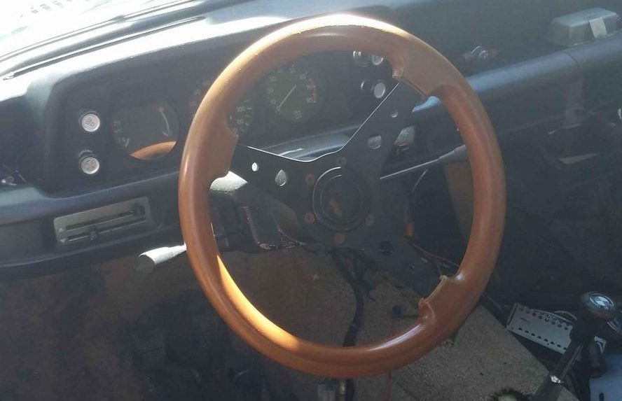 The seller claims this is one of a few 2002s he owns, which is fairly typical for a 2002 fanatic. He is moving this car along because he apparently found a more compelling project to revive. This one looks like it was loved at some point, as it has an aftermarket three-spoke steering wheel and wears the popular “turbine”-style wheels that came on the later E21 3-Series. The green 2002 has been repainted, with the original paint code being Sahara Beige, a popular color for covering up in a more desirable shade.