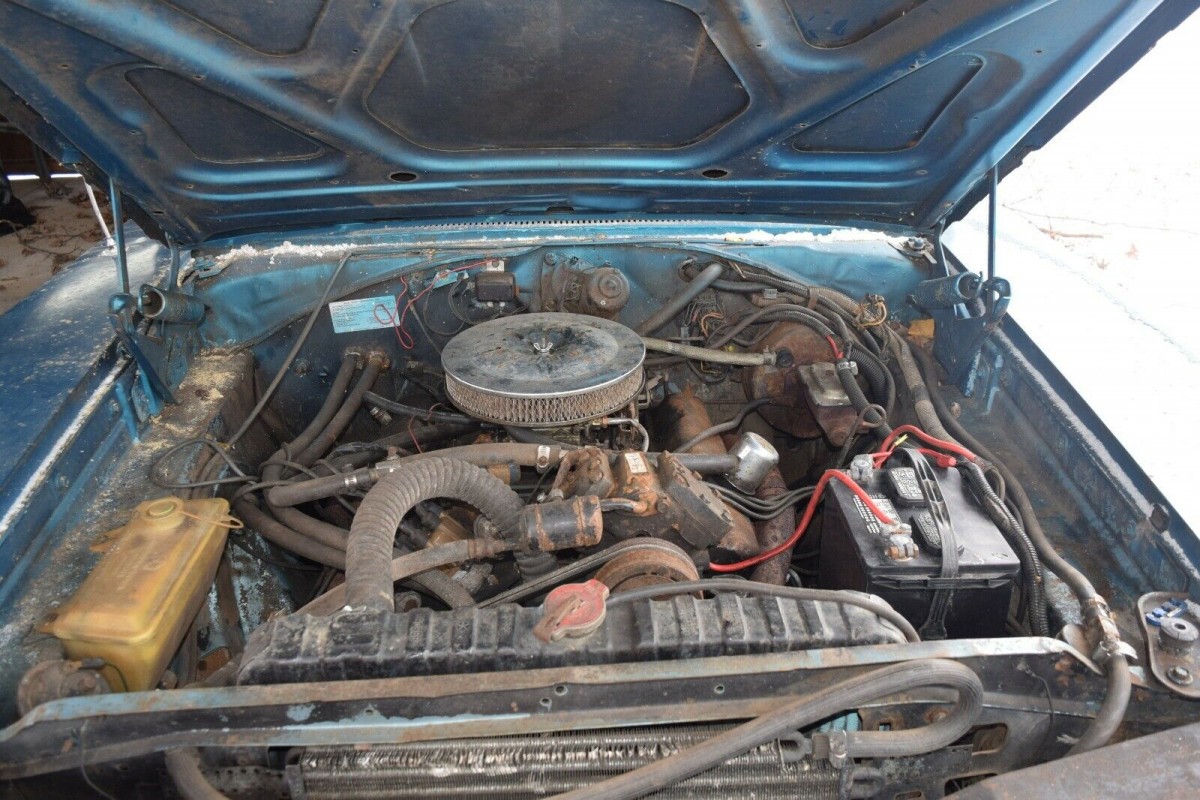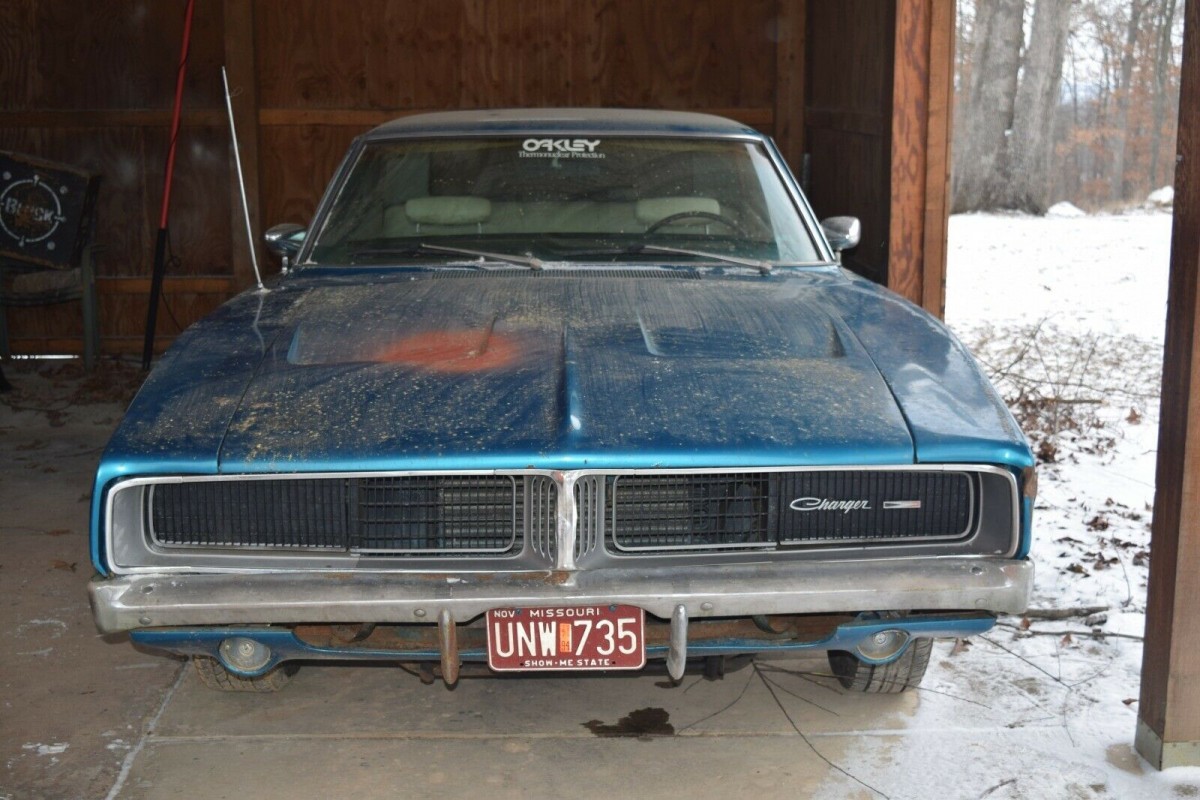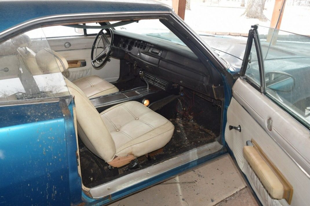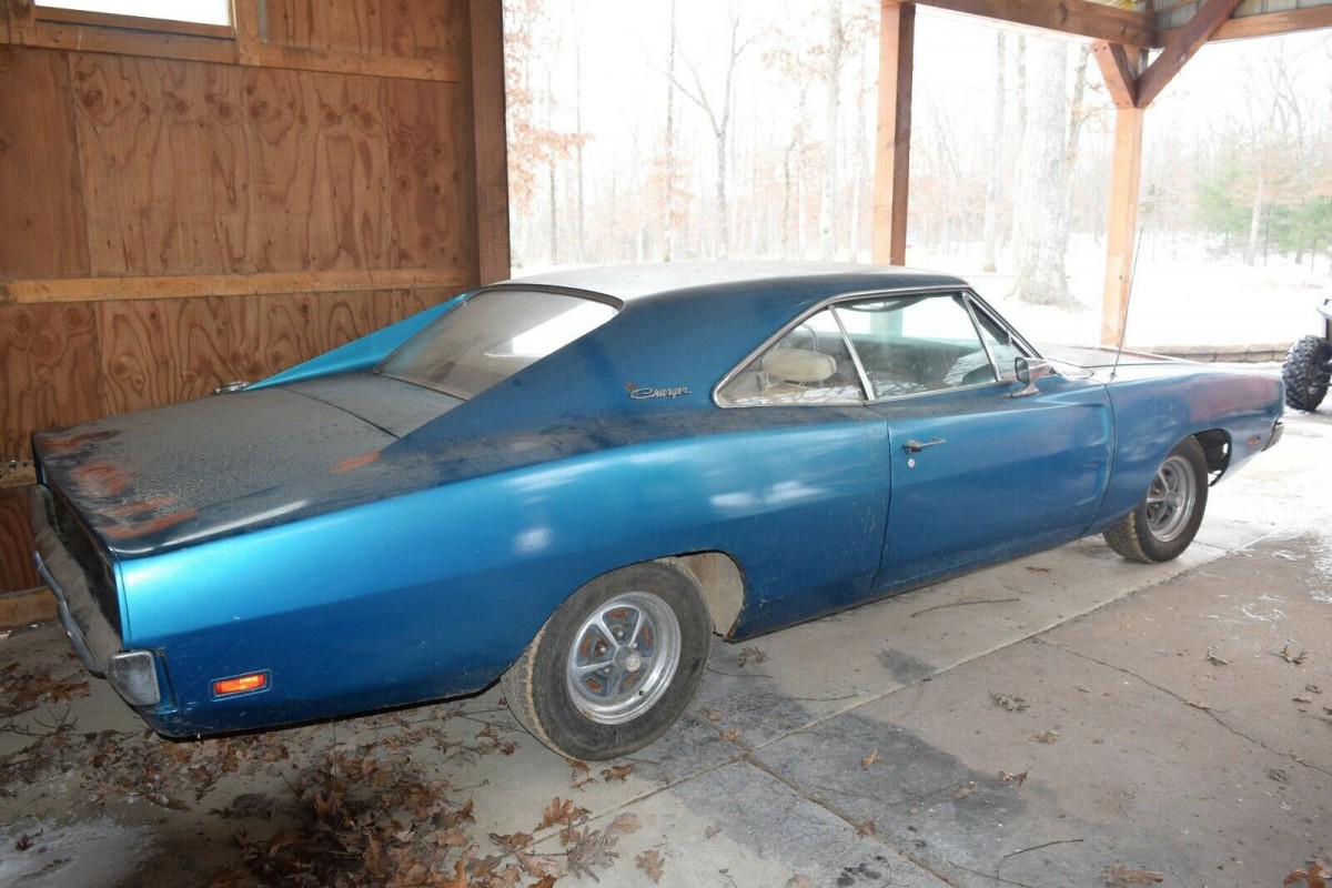 It’s not clear just how long the Charger has been sitting in that shed, but I think that you could count the time in decades. While it basically looks quite promising, there are some rust issues that will need to be dealt with. The worst of these is in the frame on the driver’s side, just behind the rear end. There is also some limited rust in the driver’s side floor, and in the trunk. There are a few bubbles visible in some of the lower extremities of the body, but overall, these are pretty small. The car has had a repaint at some point and was originally finished in B3 Light Blue Metallic. I’d be willing to bet that the new owner will probably choose to return it to that color. You will also find a YouTube video at the bottom of the article which gives you a really good look at the condition of the car’s floors and frame.