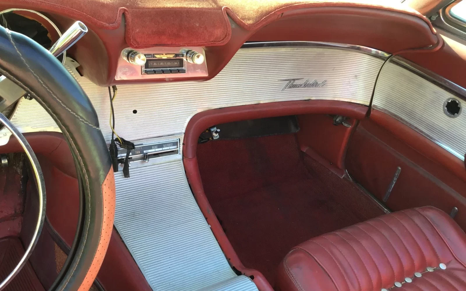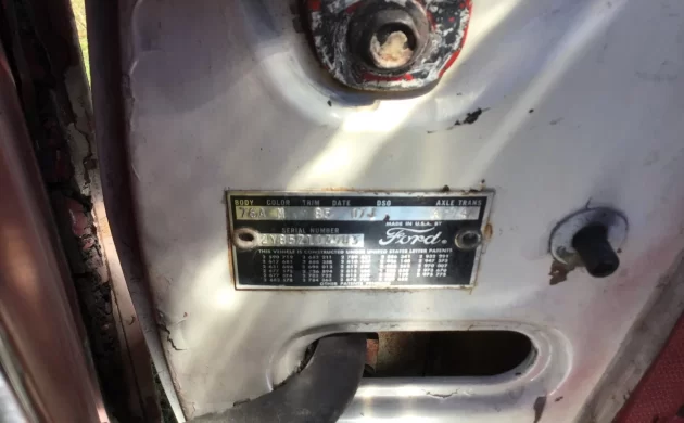 Other facts we can learn from the data plate: this car has an “Equa Lock” differential (most Thunderbirds had a 3.00:1 ratio, as does this one), and the Corinthian White paint was ordered with a red leather interior (yes, leather was available). Surprisingly, there’s no District Sales Office number, so we can’t get an idea of where the car was originally sent when it was new.