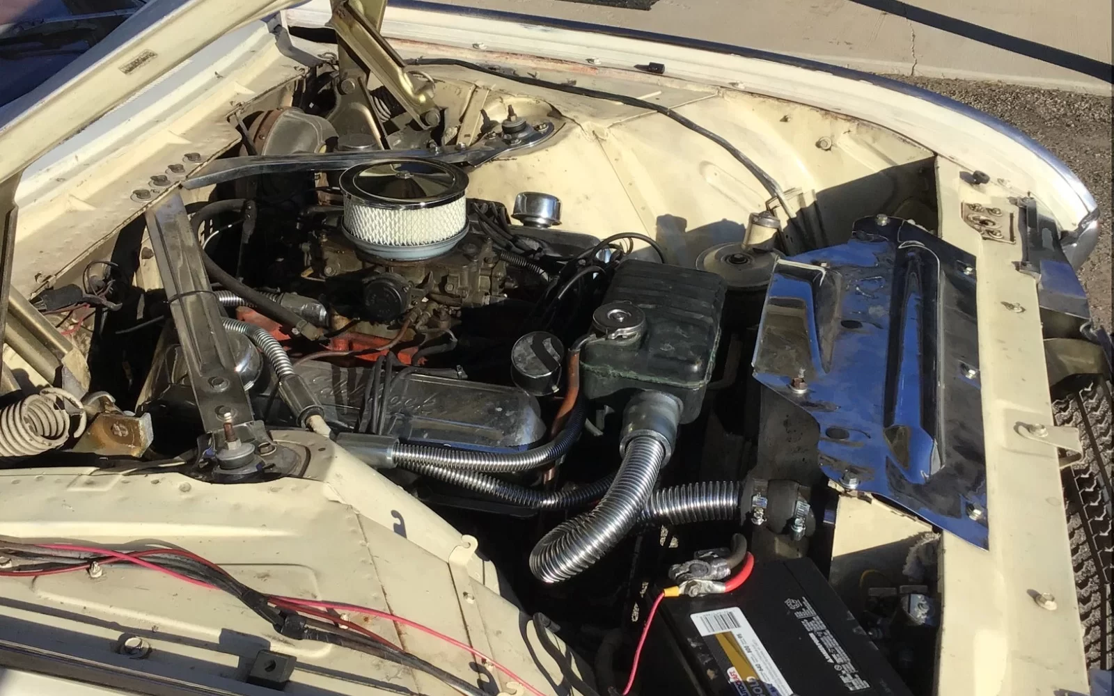 The engine is the standard Z-code 390 four barrel, which produces 300 horsepower and 427 lb.-ft. of torque. The seller has posted a video walkaround and test drive of the car and mentions that it runs and drives fairly well but could use some tuning. The carburetor is an Autolite 4100, which would have originally come on the car, and aside from some chrome dress-up items and an odd upper radiator hose that I could do without, it looks fairly stock in the engine bay. This is not, by the way, an air-conditioned car, which wasn’t terribly uncommon in convertibles.