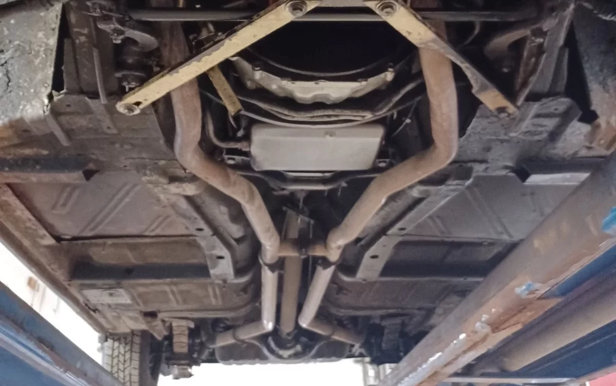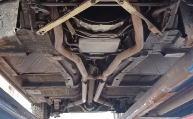 The undercarriage is not bad but it has some issues that aren’t immediately obvious in this photo but are in the video. The driver’s front floor pan has been installed using adhesive, and the passenger side floor pan is sitting in place but has not been welded in. There is some rust in the passenger-side rocker panel and in the passenger-side rear subframe and torque box area. Since the Thunderbird is a unibody car, it’s important to repair it correctly, but the T-Bird’s platform was fairly strong, which is probably why this car weighs close to 5,000 pounds.