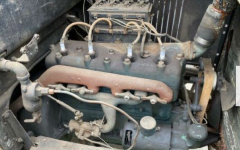 Under the hood is the typical “T” powerplant, a 20 HP, 177 CI, in-line, flathead four-cylinder unit. The seller adds, “ I did get the car started after putting in a new starter, starter switch and cable. I just poured the gas in and got it to fire up and run about a minute by playing with the carburetor”. The engine shows as original, except for the starter of course, and complete – it even has what looks like a leather fan belt.
